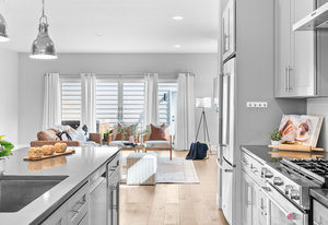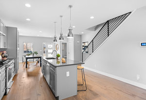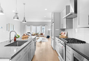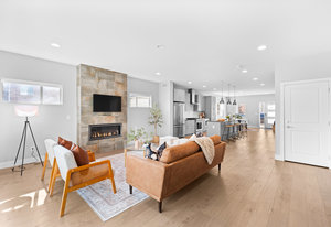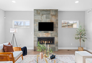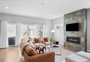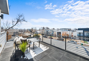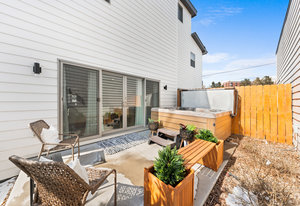 Experience modern luxury in the heart of SoBo! This stunning attached home offers 4 bedrooms, 4 bathrooms, and over 2300 square feet of beautifully designed living space across three levels. Ideally located within walking distance to trendy restaurants, lively bars, Swedish and Craig Hospitals, and the Light Rail, this home combines urban convenience with sophisticated style. Step inside to an open, light-filled, floor plan featuring 9-foot ceilings, quartz countertops, Italian tile, wide-plan engineered hardwood floors, and a sleek wide-format gas fireplace. The custom kitchen is a chef’s dream, boasting high-end KitchenAid appliances, a 5-burner gas stove, an oversized island, and a walk-in pantry—all, perfect for entertaining. Upstairs, you’ll find three generously sized bedrooms, including a luxurious primary suite with a spacious walk-in closet, an expansive shower, and a private covered deck. A convenient fully furnished laundry room completes this level. The rooftop deck is the true highlight, offering breathtaking mountain views, a loft area, a wet bar, a half bath, and an additional room—ideal as a fourth bedroom or home office. Additional features include two furnaces, two A/C units, full-length sliding doors leading to a private patio and backyard with a hot tub, and a spacious 2-car garage. Plus, the 929-square-foot unfinished basement provides endless possibilities for customization. The home also is the Southern unit giving it maximum exposure to sunlight. Welcome home!