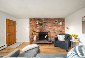 Welcome to your newly refreshed condo in the vibrant Wash Park West neighborhood! This move-in-ready home, located on the top floor, ensures added privacy with no neighbors above you and minimal foot traffic, thanks to its central location away from stairways. It features an open-concept layout designed for comfortable living, abundant natural light streaming in through both east and west-facing windows, and a spacious dining area seamlessly flowing into the living room and kitchen. The living room invites relaxation with its charming brick accent wall and cozy wood-burning fireplace. The updated kitchen offers ample space, including a pantry, making it ideal for preparing meals and casual gatherings.