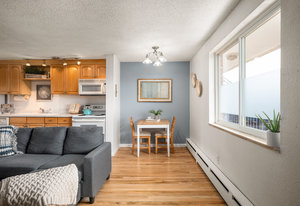 Recent enhancements include fresh paint throughout, new hardwood floors, new carpet, new blinds (to be installed), new A/C unit, and a brand-new boiler (to be installed), ensuring a comfortable living environment year-round.