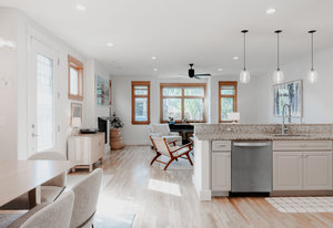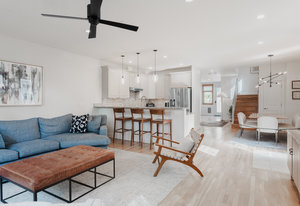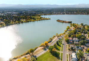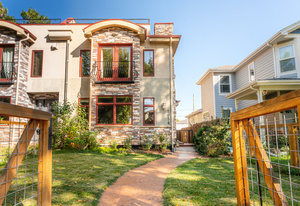 Sloan's Lake Dream Location! Stunning sun-drenched, open layout, 3-story 1/2 duplex, perfectly situated in the residential sweet spot of Sloan's Lake. Offers the ultimate blend of luxury, convenience, and breathtaking views. The bright, open floor plan ensures ample space for comfortable living and entertaining. The main level features a dining room and gourmet kitchen with stainless steel appliances, a gas stove, granite countertops, along with a living room with cozy gas fireplace. A versatile main floor bedroom/office with a 3/4 bath and a mud room complete this level. The second floor boasts an extra-large primary suite with a fireplace, Juliet balcony, and lavish 5-piece primary bath, plus a second bedroom/bath suite and full laundry facilities. The third level is designed for entertainment or work, featuring a wet bar w/dishwasher, half bath, and a wall of windows with stunning views of the city, mountains and ski. Step out onto the southwest-facing deck or the southeast-facing deck to soak in picturesque mountain and city views. Natural light floods this home, highlighting the hardwood floors and metal railings throughout. Enjoy both yard and patio with water feature, perfect for relaxation and gatherings. The property includes a detached 2-car garage and is located on a charming block with no HOA. Extremely well equipped with two furnaces, two water heaters, and two air conditioners with zone control, this home offers efficiency and comfort. Enjoy proximity to restaurants, shopping, and entertainment, with easy access to Downtown Denver, Light Rail, and Mile-High Stadium