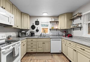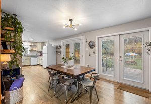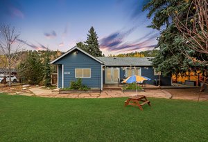 Welcome to 26095 Columbine Trail, a charming 2-bedroom, 1-bath home nestled near the picturesque downtown of Kittredge, CO. This delightful 1,035 sq ft ranch-style home is move-in ready and filled with updates that blend comfort with modern living. Step into an open floor plan featuring luxury LVP flooring and a cozy fireplace framed by beautiful fieldstone. Natural light pours in through two sets of double French doors, adding a bright and airy feel throughout.