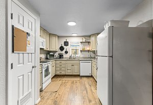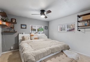 From the double French doors, step out onto a lovely deck, overlooking a fully fenced yard, including a flagstone walkway and raised garden beds—perfect for outdoor dining, entertaining, or simply enjoying the sunny Colorado days. The kitchen is designed with function and style in mind, boasting granite slab countertops and included appliances. Two generously sized bedrooms offer cozy retreats, while a well-appointed bathroom completes this inviting home.