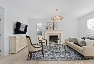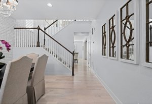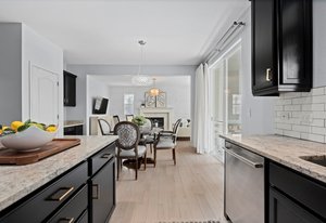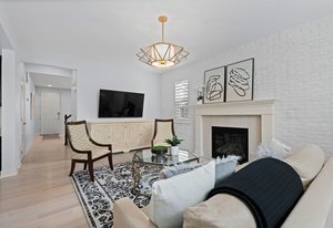 The heart of this home is undoubtedly its exquisite open-concept main floor, perfect for entertaining family and friends. A breathtaking hand-laid white brick feature wall serves as a striking focal point, harmonizing beautifully with fresh paint and plantation shutters that adorn every window. The updated kitchen is a culinary delight, showcasing new backsplash, hardware, and elegant touch faucet that add a modern touch.