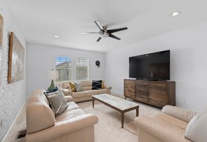 Venture downstairs to discover the finished basement—a versatile space ideal for movie nights or game days—while outside awaits your own personal paradise! Located on a corner lot within the gated community, this home exudes peace and tranquility. In addition to backing up to a green belt, the front and back patio were upgraded with brick walls, planter boxes, and custom wrought iron work. Not only does it provide essential privacy for outdoor living along with the ability to plant beautiful flowers, but it also added additional usable outdoor space by 15 sqft in the front and 25 sqft in the back. Within the community, you also have access to multiple ponds, open spaces, and a walking path, guaranteeing you’ll enjoy all that nature has to offer. This home truly embodies nature's beauty right at your doorstep.