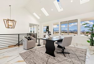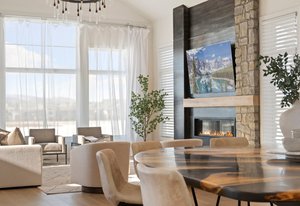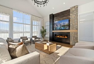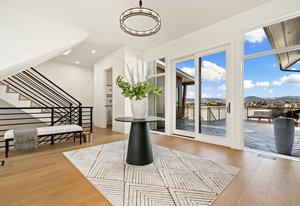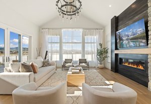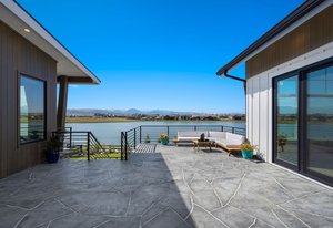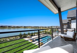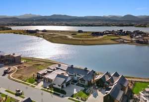 The sophisticated design seamlessly integrates indoor and outdoor spaces, perfect for Colorado living and ideal for entertaining or enjoying the serene surroundings of this lakeside location.