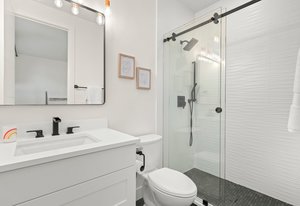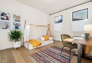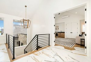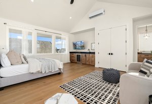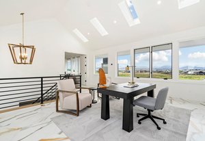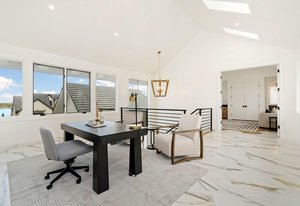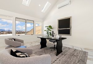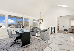 The second-floor loft, enhanced by unique skylights, serves as an ideal retreat for a home office, au pair suite, or mother-in-law suite, ensuring privacy and comfort.