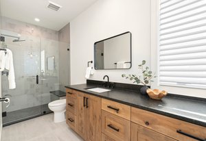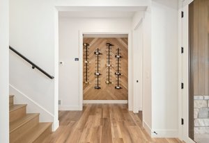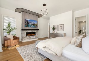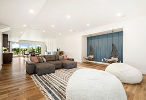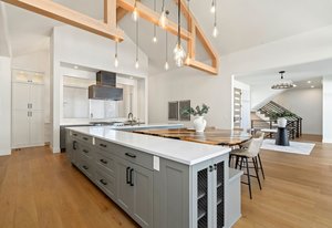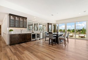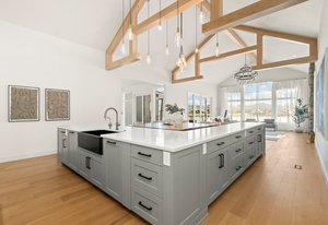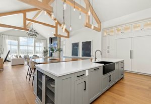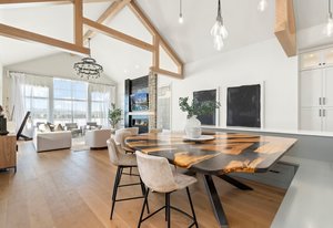 The Grand room impresses with 20-foot ceilings adorned with beautiful architectural beams & an abundance of natural light from sun filled picture windows.