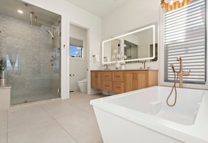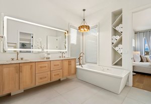 Retreat to the SPA INSPIRED PRIMARY with private balcony showcasing some of the best views in the community. The bath is a true oasis, with a Whirlpool tub, a beautifully appointed walk-in shower system, Taj Mahal stone, and a premier Toto bidet tucked in the water closet.