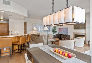 This recently remodeled 2-bedroom, 2-bathroom Kayenta unit offers updated bathrooms, new flooring, a modern kitchen, fresh lighting, and stylish furnishings. Located directly on the Misty Maiden ski run, it's just a 2-minute walk to the Gondola, as well as Mountain Village's shops and amenities. Included in the sale is a deeded parking space in Blue Mesa. This property is a rare find and won't last long. Floor plans are located in ''Documents''