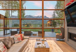 A striking blend of elegance and mountain serenity, this fully remodeled Mountain Village residence by Trulinea Architects is a true alpine sanctuary. Floor to ceiling windows frame sweeping mountain views, filling the open interiors with natural light and capturing the essence of mountain living. Seamless indoor outdoor flow leads to expansive patios, ideal for entertaining or quiet mornings surrounded by nature. A secluded backyard oasis with hot tub and aspen grove offers a peaceful retreat after adventures. Ideally located with easy access at the entrance of Mountain Village, the home offers privacy, convenience, and refined living. A rare opportunity to own a premier Telluride property, schedule your private tour today.