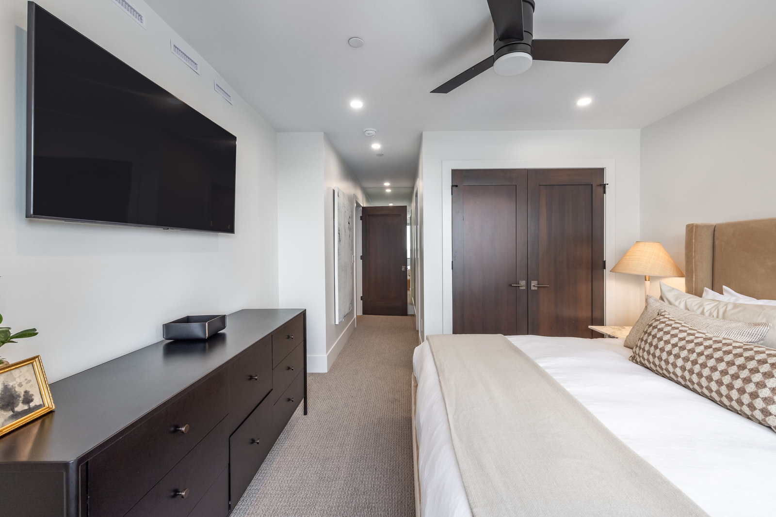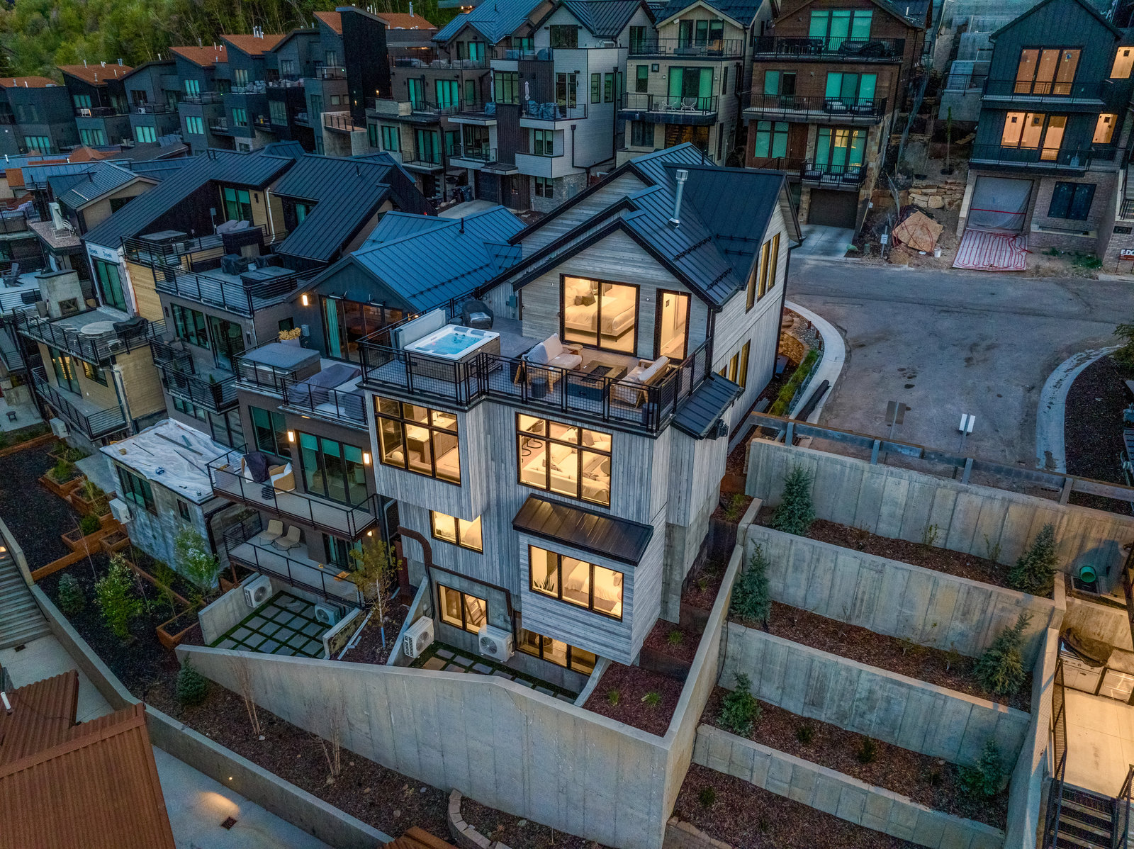 Located in Old Town Park City, King’s Crown development, this recently completed five-bedroom, seven-bath residence offers the ultimate ski-in/ski-out mountain retreat. Designed by Kristen Bombeck and built in 2024, the home blends sophisticated design, custom finishes, and luxurious details with a thoughtful floor plan that emphasizes both comfort and privacy. Just steps from the private owner’s lounge and lockers at The Tower, the home provides seamless mountain access while offering spacious, inviting interiors. Five en-suite bedrooms are positioned across multiple levels—including a top-floor primary suite with a heated rooftop deck, hot tub, and fireplace—framing views from City Park to Lewis Peak. The main level integrates copper, stone, and wood into a stylish yet warm gathering space, anchored by a chef’s kitchen with quartz and marble countertops and top-of-the-line appliances. Natural light floods the interiors, enhanced by carefully curated furnishings, custom built-ins, generous storage, and Lutron automated shades. A lower-level lounge with adjacent bunkroom provides a perfect setting for movies and games, while an elevator ensures easy access to all four levels. Every detail, from flooring to countertops, has been thoughtfully selected to balance beauty and functionality. Beyond the home, four seasons of recreation await: direct ski-in/ski-out access, miles of hiking and biking trails, and proximity to Park City Mountain Resort’s base village and the Park City Golf Course—all just a short walk away.