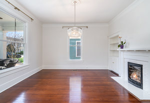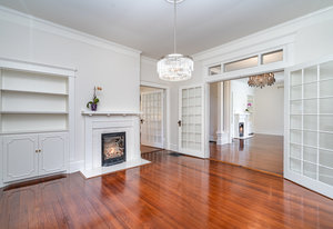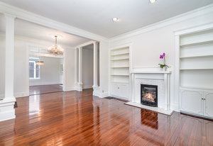 Dining/Living Rms: Gas fireplaces/built-in cabinets & bookcases/French-return drape