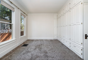 Downstairs Prim Bedrm: Built-in closets/drawers/blinds/French-return drape rods/glass