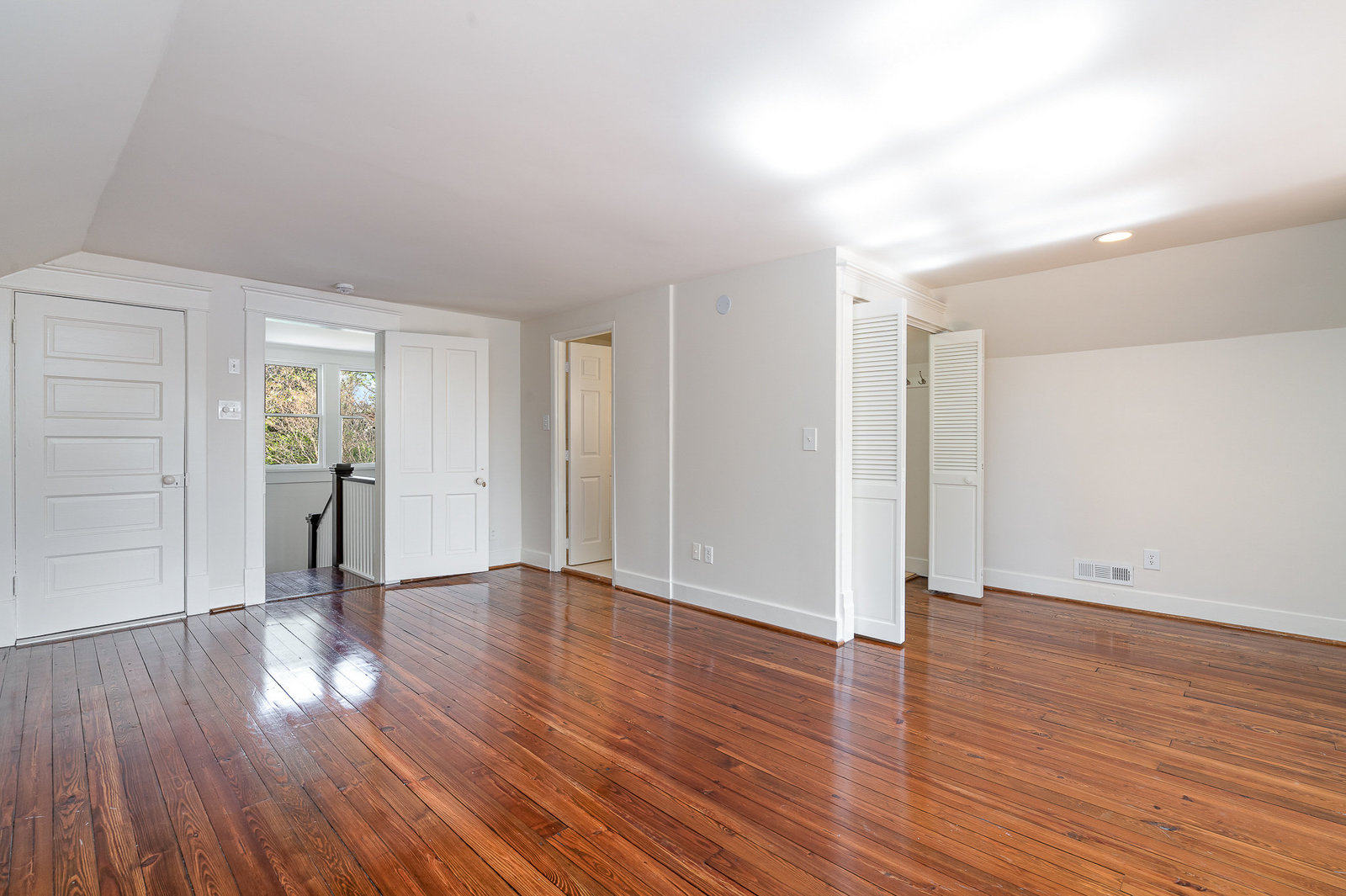Upstairs Primary Bedroom: 2 closets/2 attics/laundry.