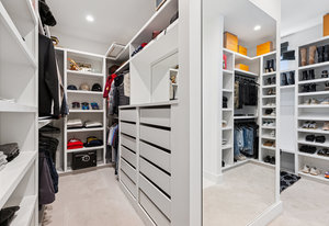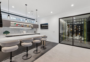 Introducing this exquisite custom Hill Top residence, boasting a three-car garage, five bedrooms, seven bathrooms, and 8,247 sq. ft. of meticulously designed living space. As you enter through the stately foyer, soaring vaulted ceilings create an immediate sense of grandeur. The open-concept main level flows effortlessly from a formal dining area with a double-sided fireplace warming both the dining room and adjacent family room to a breathtaking gourmet kitchen that’s a true chef’s dream, featuring premium Thermador and Wolf appliances, including a spacious Thermador refrigerator, a high-performance Wolf gas range, and two Wolf wall ovens for ultimate versatility. A generous island offers casual dining, while an attached second kitchen provides additional convenience with a full-size refrigerator, dishwasher, sink, and ample counter space—ideal for entertaining or managing a busy household. The expansive primary suite is a luxurious retreat with magnificent mountain views, a cozy fireplace, and a dry bar, while the spa-like primary bath includes his-and-her walk-in closets, separate water closets, dual vanities, a double shower with steam, a soaking tub, heated floors, and a heated towel rack. Laundry is exceptionally convenient with three full washer/dryer sets: two in the second-floor laundry room and one on the main level. Additional highlights include a versatile third-level bonus room (currently a workout area) with a fireplace and west-facing viewing deck offering stunning sunsets, plus a state-of-the-art basement entertainment wing featuring a tiered movie theater with a 4K audio-visual system, custom wet bar kitchen, expansive family room, climate-controlled wine room, and a guest bedroom, all accessed by an elevator serving all levels for effortless living. Every detail in this thoughtfully designed home has been crafted for maximum comfort, luxury, and effortless living.
