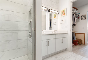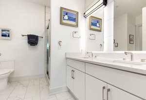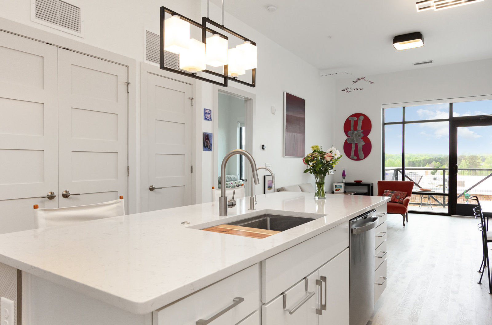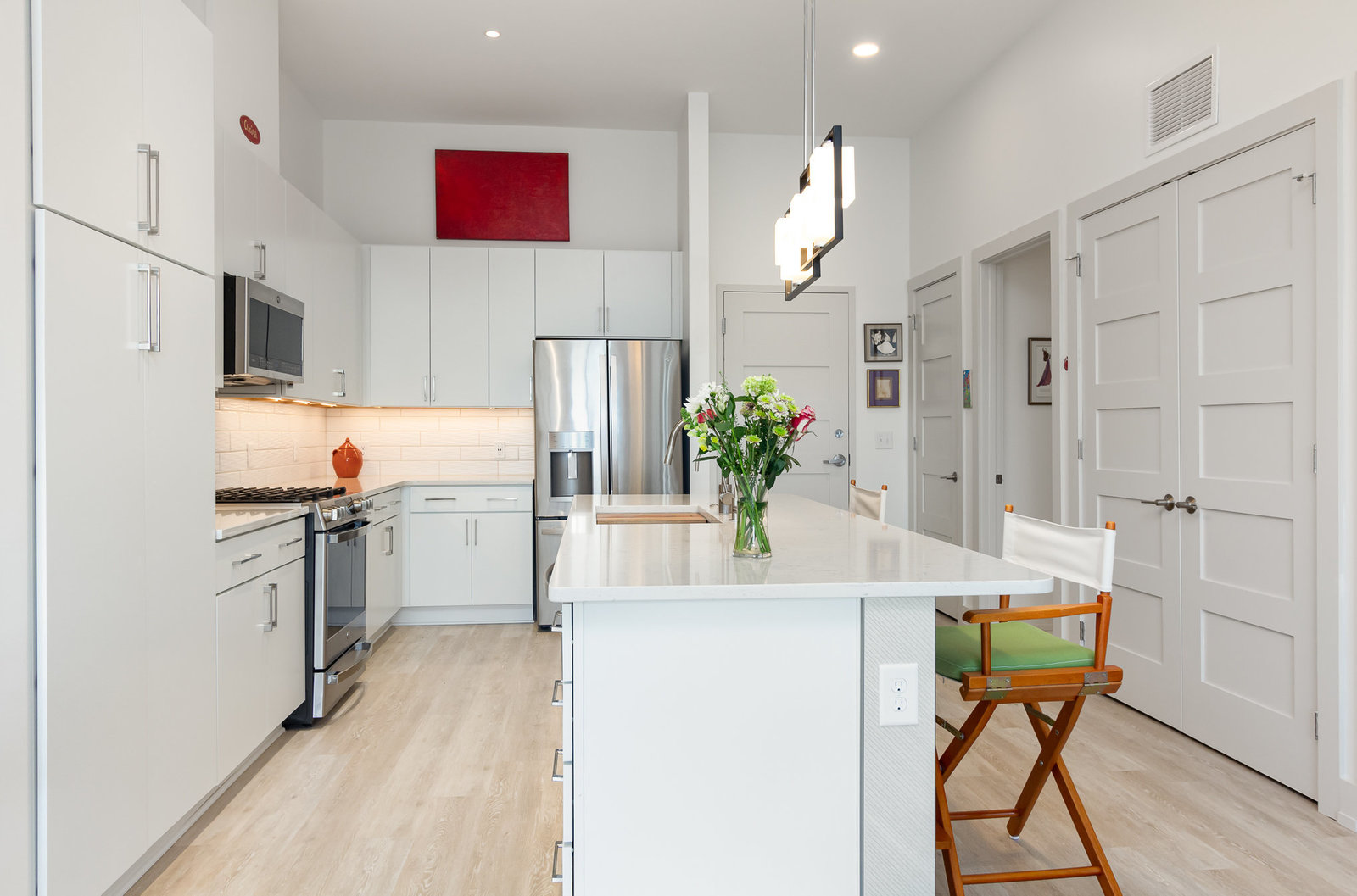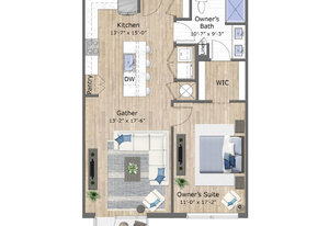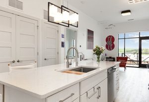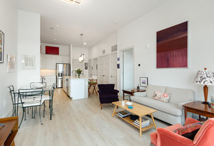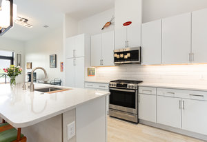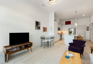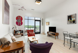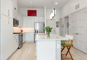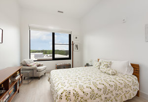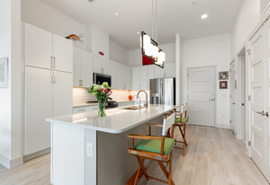 Fantastic 1-bedroom "Jade" plan condo in the heart of Mosaic at Chatham Park. There are just 11 units in this exclusive, secure building, all on the 3rd floor. Unit 308 sits high above the "Works Yard' with great., long views. Let the light in with 11' foot ceilings and oversized windows flooding the light LVP flooring. Open kitchen features a large island, gas cooking, quartz counters, tile backsplash and stainless steel appliances, including a refrigerator. Tiled bathroom, designer closets and contemporary designer touches throughout. Washer and dryer also included. Assigned covered parking space and a storage unit in the climate-controlled basement. ...