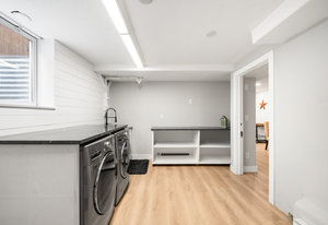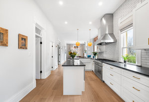 In the heart of Baker, this 5 bed, 4 bath fully remodeled Victorian gem blends historic charm with modern elegance in one of Denver’s most vibrant neighborhoods. The large picture window draws your eye outside to the spacious fenced front yard. Inside the formal entry, you will be blown away by the openness and overall mass of the main interior living space…wide and open with soaring ceilings, exposed brick and beautiful white oak flooring. A transom window and cozy gas fireplace are must-haves in a home of this era. The chef’s kitchen features Thermador appliances and a generous eat-in peninsula. On-point timeless finishes were chosen for the kitchen and all bathrooms. A convenient mudroom welcomes you in from the rare 3 car garage! The main level lives large with a bedroom, full bathroom and a dedicated office. Upstairs, the luxurious primary suite is a true retreat with vaulted ceilings, a Juliette balcony and walk-in closet. The spa-inspired ensuite bath is a 5pc with a glass shower and soaking tub. Two additional bedrooms and another full bath upstairs. The expansive finished basement offers versatility as it can be rented (with a separate entrance) if one so chooses. With large egress windows in several locations, this bright space offers a full kitchen with a gas range, a living area with a gas stove, a large bedroom retreat, ¾ bath with walk-in shower and two laundry rooms (one for upstairs and one for downstairs). It’s a perfect short or long-term rental, in-law suite or just additional family living space! Outside, enjoy seamless indoor-outdoor living with a covered back deck, lush landscaping, fruit trees, and a tranquil fish pond, all enclosed by a newer fence. With a Walk Score of 91!...you’re steps from trendy boutiques, top restaurants, and scenic parks. Be downtown in minutes or straight up to the mountains each weekend! This home offers the perfect blend of historic craftsmanship and modern sophistication—don’t miss your chance to make it your home!