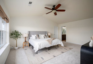 Additional updates include Bali shades, new interior paint (2024), new carpet in all bedrooms (2024), a replaced roof (2019), and a furnace (2018).