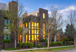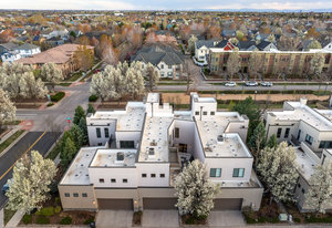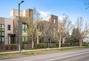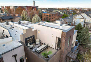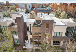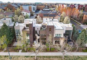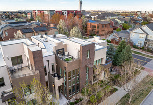 Experience the pinnacle of luxury in this stunning urban contemporary townhome, a rare find from the Infinity Homes Sky Terrace collection. The meticulous attention to detail and five distinct outdoor spaces distinguishes this collection as one of the most sought after in the area. Step into the home through the private patio and be mesmerized by the high ceilings, airy floor-plan, and south-facing floor-to-ceiling windows. The chic design elements, including hand-troweled wall texture throughout, With a host of recent high-quality upgrades and sparkling resin-coated floors on the main level, complemented by brand-new carpeting upstairs, the home feels brand new. Culinary enthusiasts will delight in the gourmet kitchen, equipped with a large granite island, double oven, and brand-new dishwasher and refrigerator. The main floor powder room has been recently refreshed. Extend your entertaining space to the sizeable private courtyard patio. The main floor den, featuring exposed brick, is ideal for a home office or media room. The upper level houses a secluded primary suite with a private deck and an unexpected delight - a unique, fully permitted hidden room, currently being used as a fitness and Zen retreat. This space can be adapted to suit a variety of needs. The primary suite is complete with a spacious walk-in closet and a private ensuite. The second bedroom comes with its own full bathroom and a private balcony. There's a built-in desk in the second-floor loft, perfect for an additional office or study area. Savor breathtaking Colorado sunsets from the rooftop deck or unwind by the outdoor fireplace. The home also features a new tankless hot water heater. The location is unbeatable, just a short stroll to the 29th Avenue Town Center, offering numerous restaurants, retail outlets, concerts, a farmer’s market, and grocery shopping. Fitness studios, parks, and pools are also within easy reach, adding to the immense appeal of this unique property.