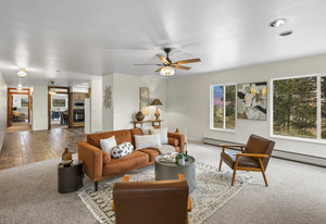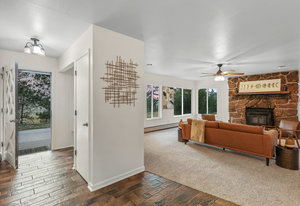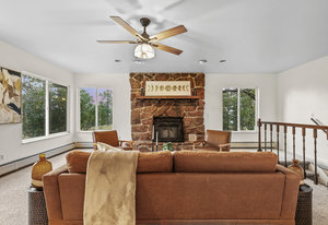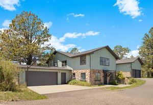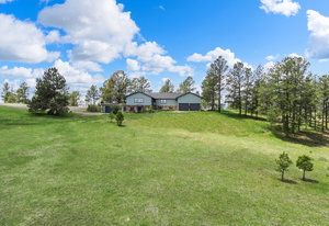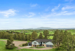 Anchoring the property is a walk-out ranch-style home, thoughtfully positioned atop a hill to maximize privacy, natural light, and mountain vistas. The front entrance was intentionally aligned with Pikes Peak—a detail that sets the tone for the entire property.