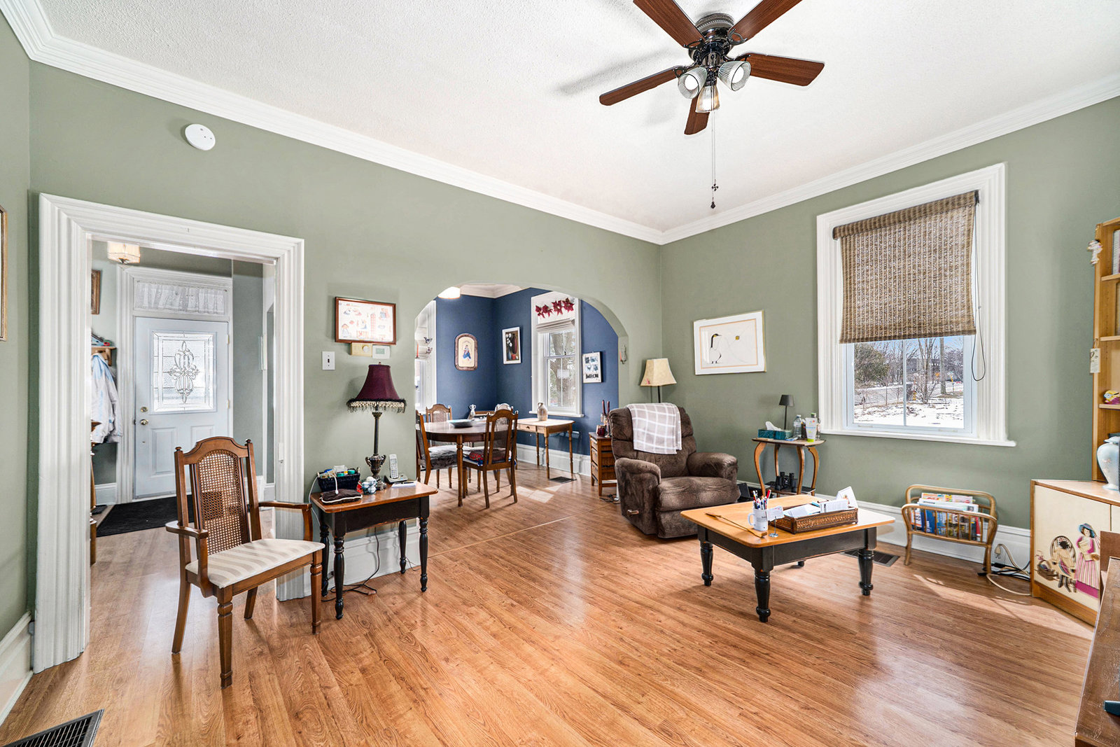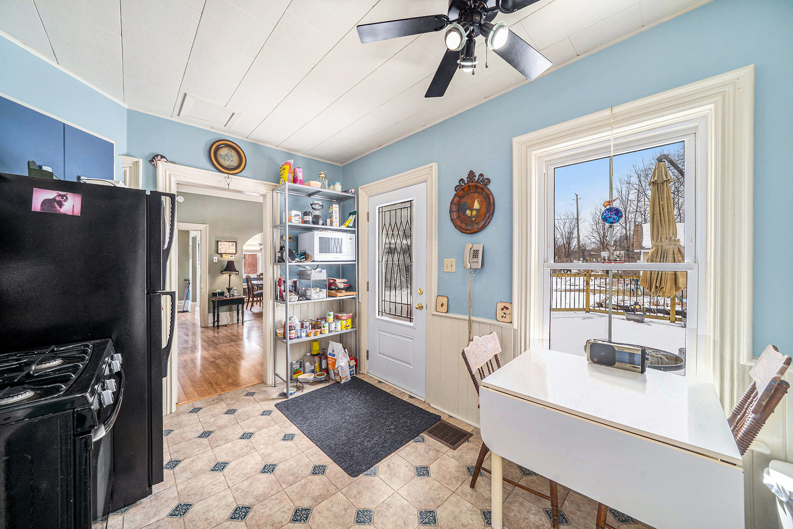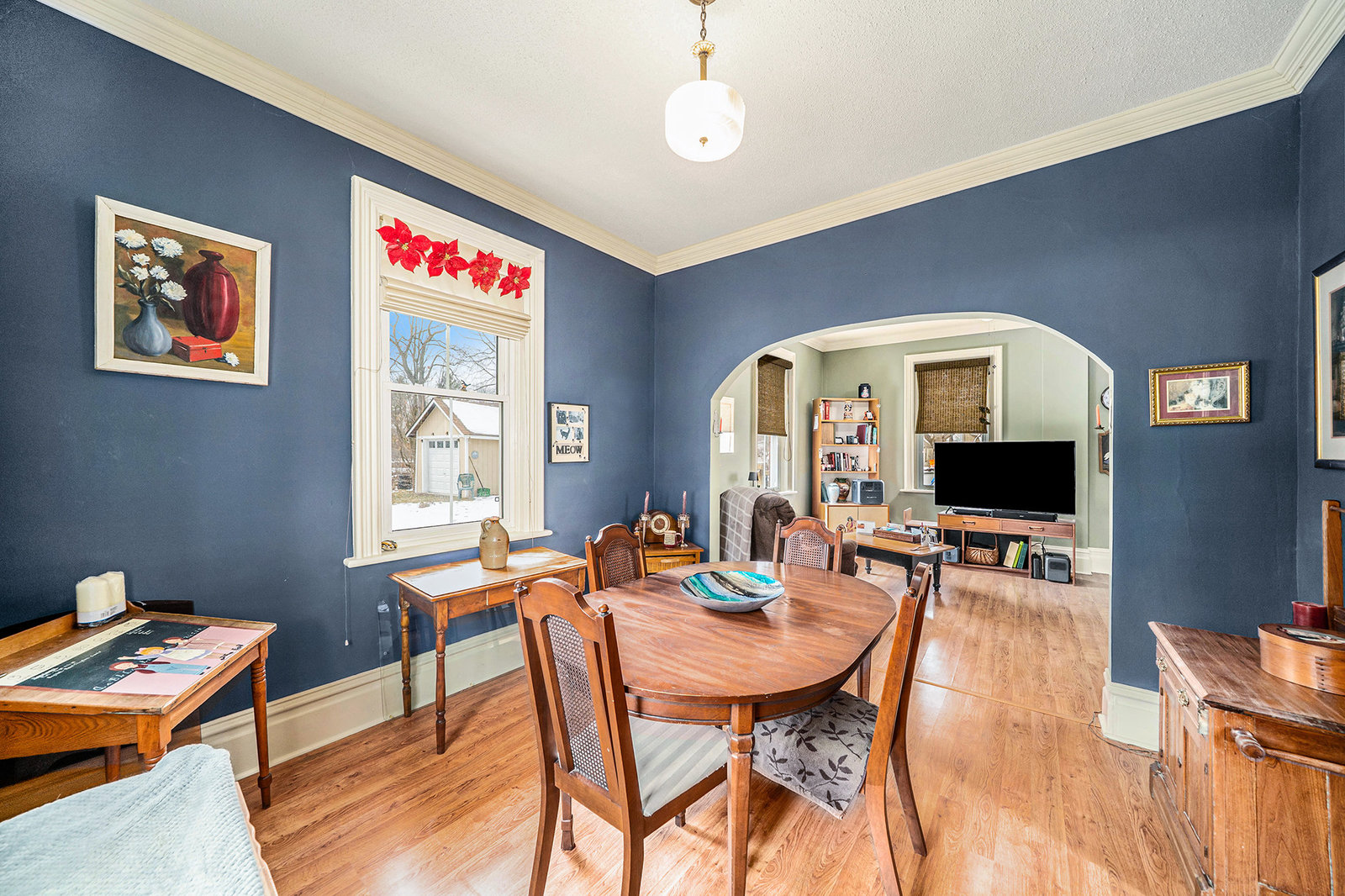 Wonderful 3 bedroom family home within walking distance to the downtown core of Carleton Place which has so much to offer. As you enter the home you have a welcoming foyer that leads to the inviting dinning room adjacent to the dining room is the relaxing living room. Off the living room is the well appointed laundry area. At the back of the home is the eat-in kitchen which offers access to the side yard and generous sized deck for entertaining. Off the kitchen are two additional unheated rooms that are used for storage. Upstairs is the 3 pc bath, the primary bedroom as well as 2 additional bedrooms. The smaller bedroom is currently being used as a home office. The home is located on an extra wide pie shaped lot and offers plenty of space for little ones to play or for further development, you also have a 1 car detached garage. Down the street is a handy public play ground. You have easy access to the walking trail as this property backs onto it. Freshly painted and with a number of updates this home is move in ready. Updates include c/a 2017 appx., nat. gas furnace 2013 appx., hwt rental 2016 appx., mason work on brick corners & chimney area 2024 appx. Current owner has been here for many years. Come make this your new home.