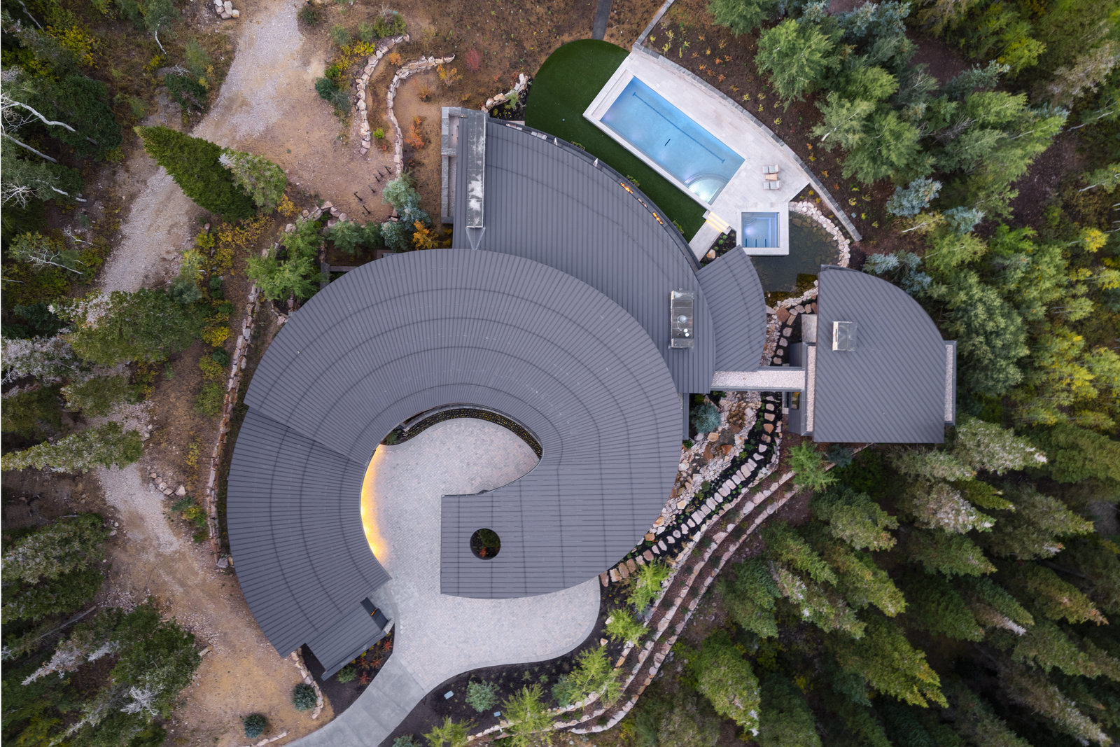 Welcome to Soluna at The Colony—a true architectural landmark envisioned by Michael Upwall and brought to life on one of the most coveted 4.5-acre ski in ski out lots in Park City. With its signature curved silhouette and window-lined bridge entry, the home feels less like a structure and more like a living sculpture, thoughtfully designed to follow the natural topography of the land. Every angle, every room, every moment has purpose, flowing intuitively from private sanctuaries to vibrant gathering spaces. Soaring glass walls frame snow-covered peaks and sun-drenched ridgelines, while the cascading creek just beyond the heated deck provides a serene soundtrack to daily life. From the ...