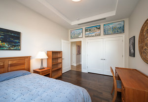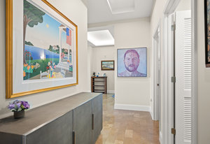Indulge in the epitome of luxury living with this meticulously remodeled 3-bedroom, 3-bath condominium spanning over 2000 square feet at The Landmark. Every inch of this residence has been thoughtfully curated to provide a lifestyle of comfort and sophistication. Upon entering the living area, you're greeted by the elegance of new wood floors, an expansive built-in bookshelf that houses a stately gas fireplace and new Eurocave wine refrigerator and designer light fixtures that adorn every room. Enjoy warm summer nights on one of two balconies which has a gas line for your grill. The gourmet kitchen is a chef's dream, boasting a new Bosch refrigerator, 6 burner gas cooktop, and top-of-the-line appliances. The primary retreat is a sanctuary within itself, featuring its own private balcony and an en-suite 5-piece bath. Unwind in the jetted tub or indulge in the frameless glass shower. The new dual sink vanity adds a touch of modern sophistication, complementing the adjacent oversized walk-in closet customized by California Closets. A second central bedroom with a custom closet accesses the hallway 3/4 bath, complete with a frameless glass shower, catering to visiting guests with elegance and style. On the opposite end of the unit, a spacious 3rd bedroom awaits, complete with an en-suite full bath and custom California Closets. Living at The Landmark is truly living in luxury with concierge, pools, guest suites, sauna/steam and more.