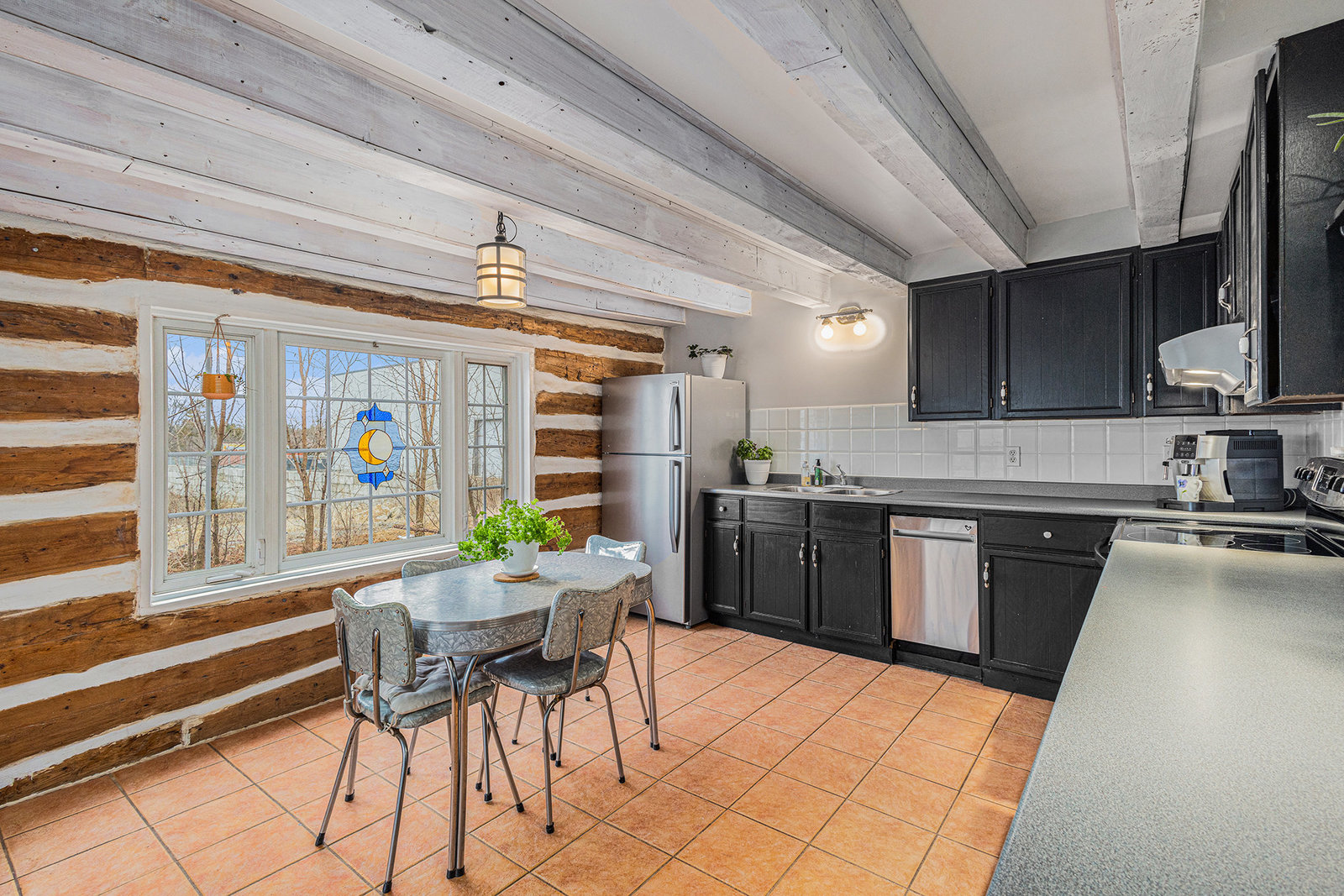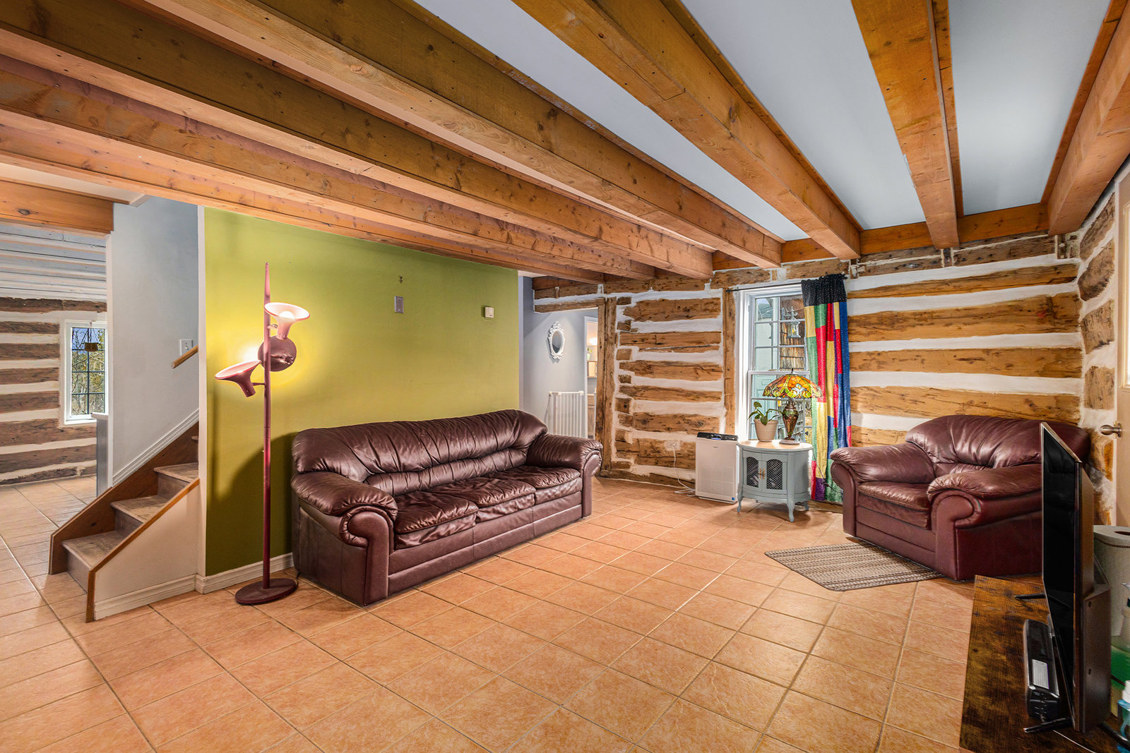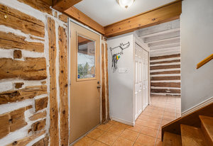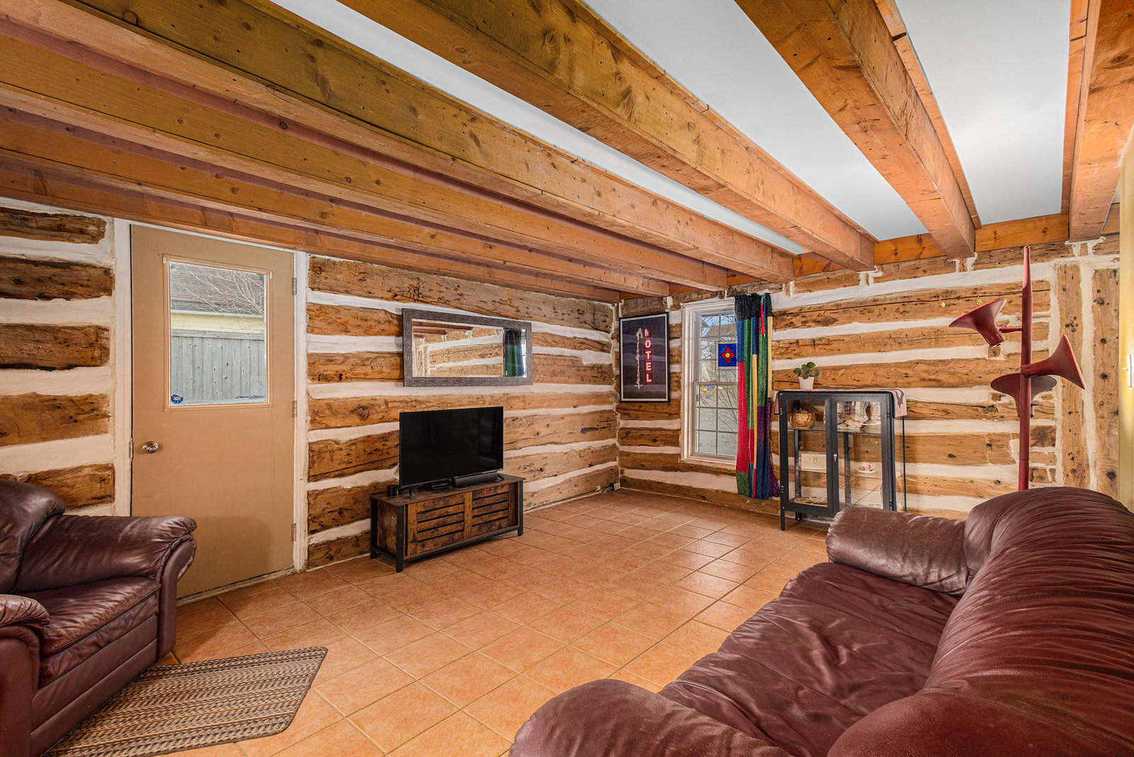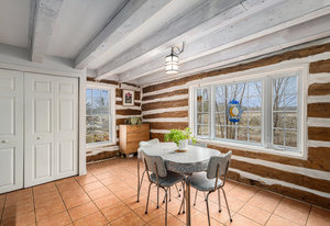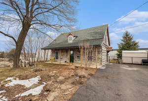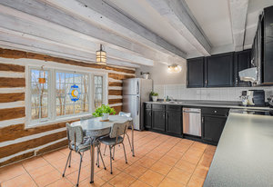 This quaint 2 bedroom log home is centrally located within the picturesque town of Carleton Place. Offering an atmosphere of the past and yet with modern amenities. The rustic charm draws you in from the front porch where you can sit and enjoy morning coffee or relax at the end of the day with a cool drink in summer. As you enter the generous living room with exposed beams you have outside access to the driveway as well as access to the upstairs. The exposed beams carry through to the adjacent inviting eat-in kitchen with plenty of counter space & storage. Off the living room is the well appointed laundry room with access to the backyard, next to the laundry room is a 3 pc bath & utility closet. Upstairs you have 2 generous sized bedrooms with closets and 4pc bath. Natural gas radiant in-floor heating keeps you cozy during colder months. You also have hot water on demand. Outside you have parking in the drive for at least 5 vehicles you also have a good sized storage shed in the partially fenced backyard. Updates include: boiler 2023 appx., fencing 2020 appx., water pump 2024 appx., shed, roof shingles 2019 appx., appliances - dishwasher 2021 appx.