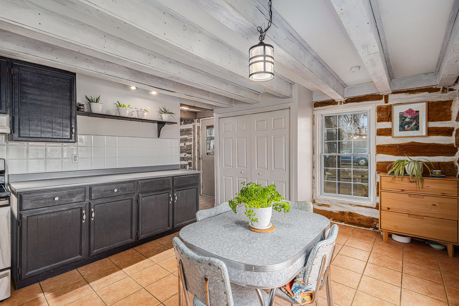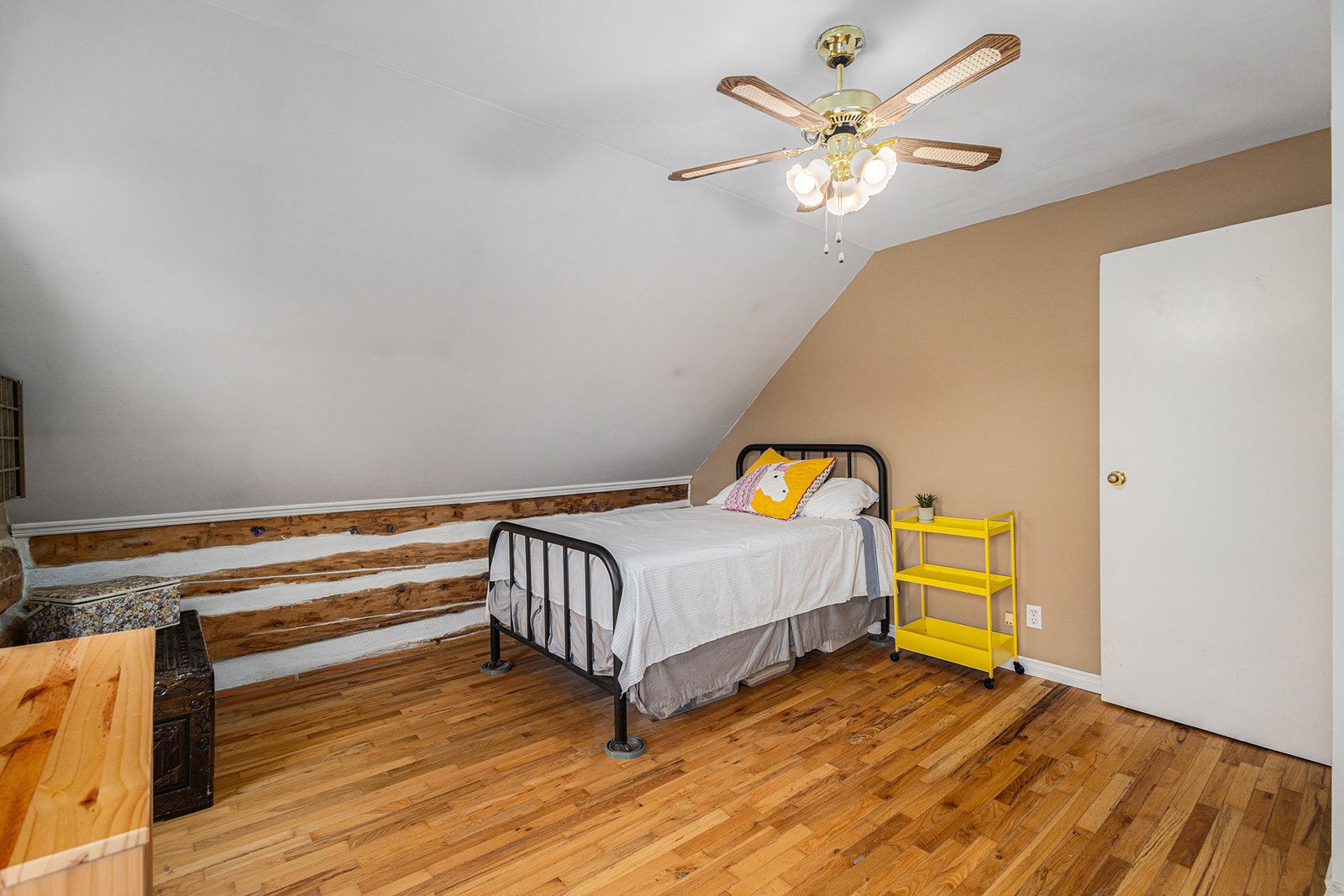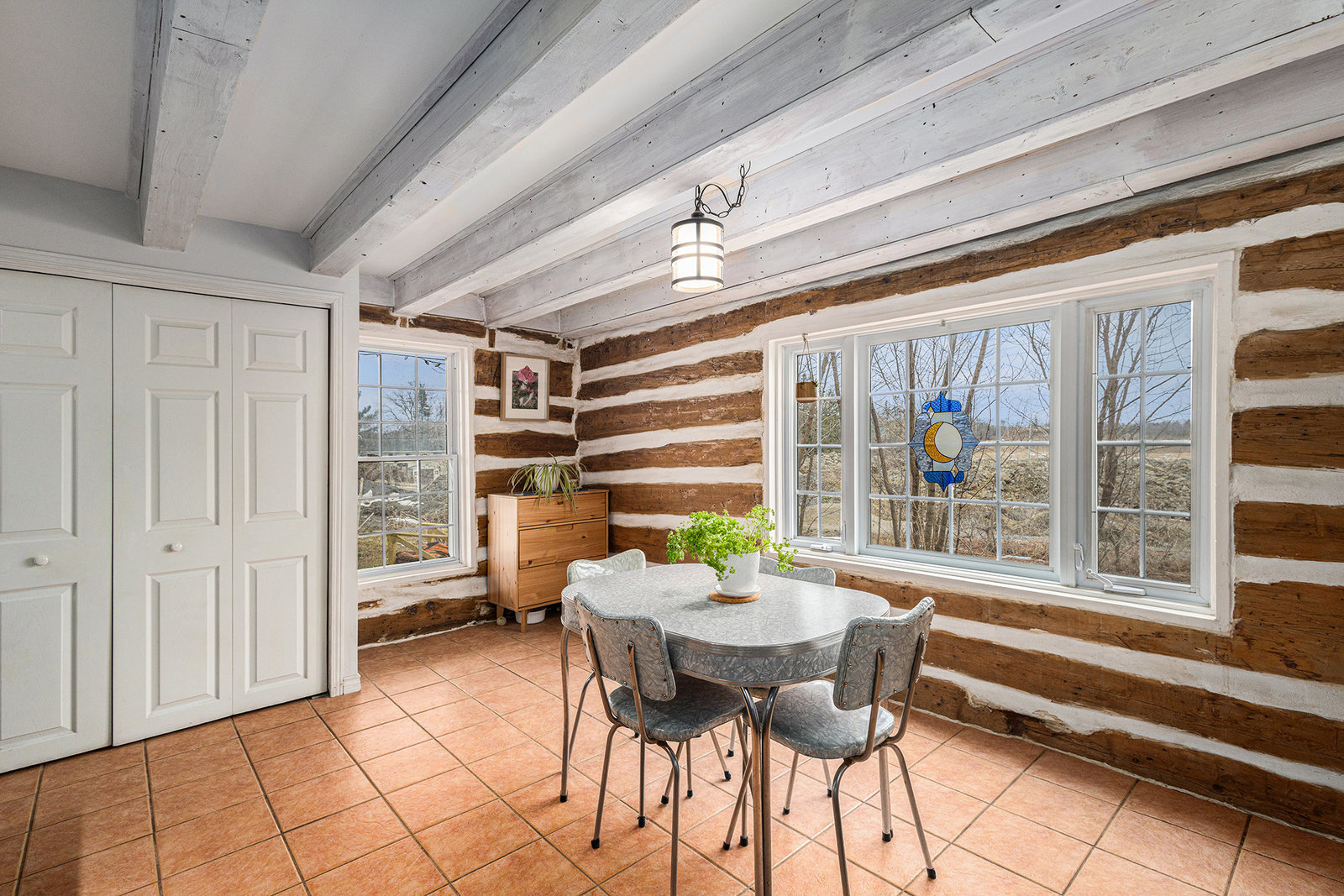 This quaint 2 bedroom log home is centrally located within the picturesque town of Carleton Place. Offering an atmosphere of the past and yet with modern amenities. The rustic charm draws you in from the front porch where you can sit and enjoy morning coffee or relax at the end of the day with a cool drink in summer. As you enter the generous living room with exposed beams you have outside access to the driveway as well as access to the upstairs. The exposed beams carry through to the adjacent inviting eat-in kitchen with plenty of counter space & storage. Off the living room is the well appointed laundry room with access to the backyard, next to the laundry room is a 3 pc bath & utility closet. Upstairs you have 2 generous sized bedrooms with closets and 4pc bath. Natural gas radiant in-floor heating keeps you cozy during colder months. You also have hot water on demand. Outside you have parking in the drive for at least 5 vehicles you also have a good sized storage shed in the partially fenced backyard. Updates include: boiler 2023 appx., fencing 2020 appx., water pump 2024 appx., shed, roof shingles 2019 appx., appliances - dishwasher 2021 appx.