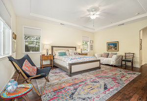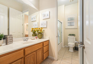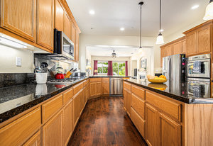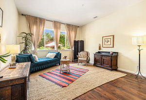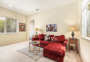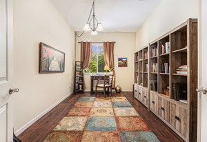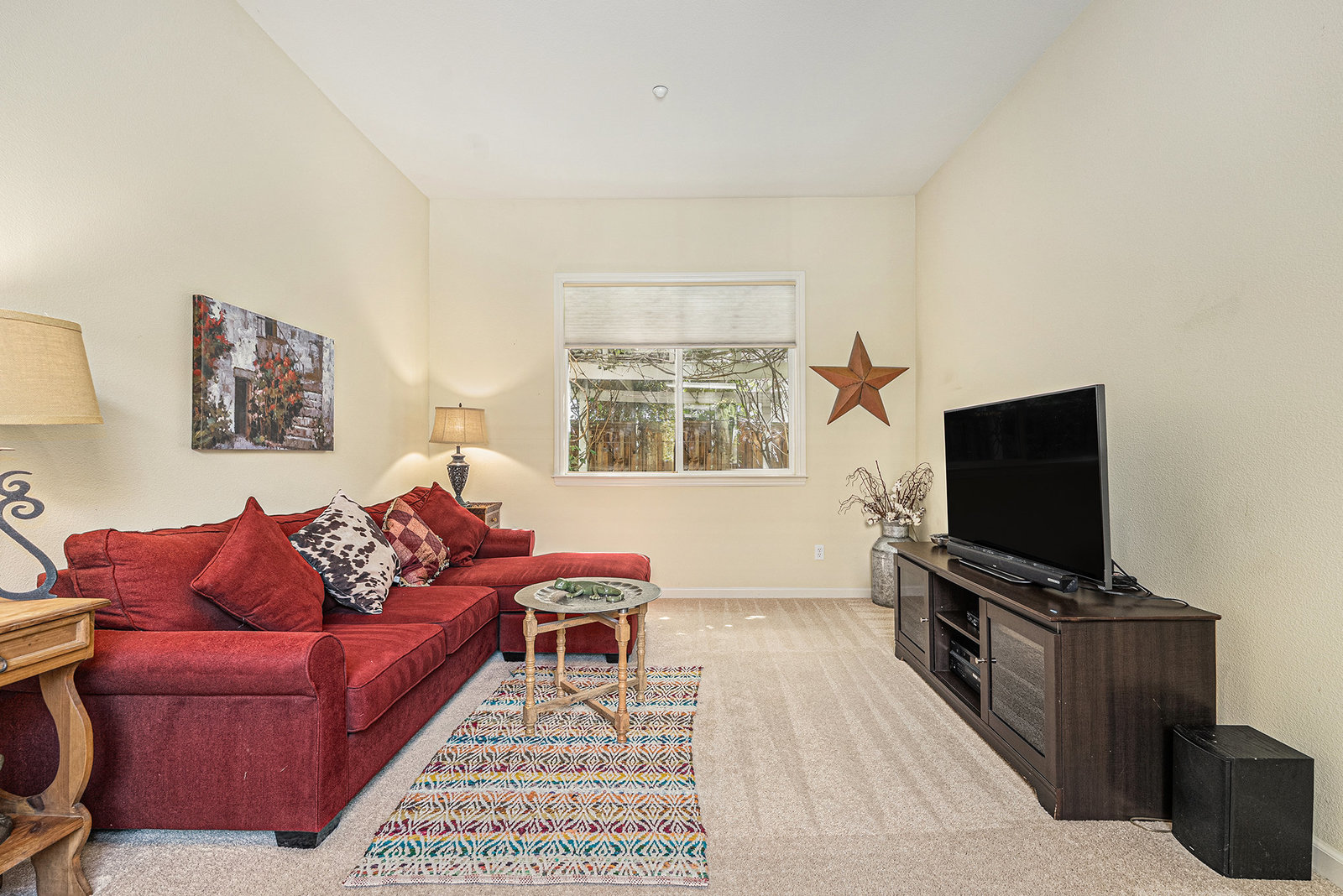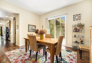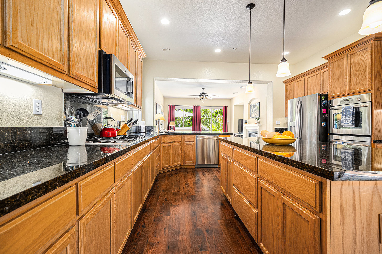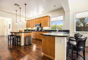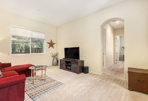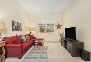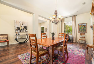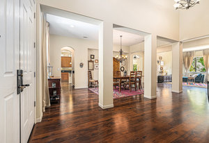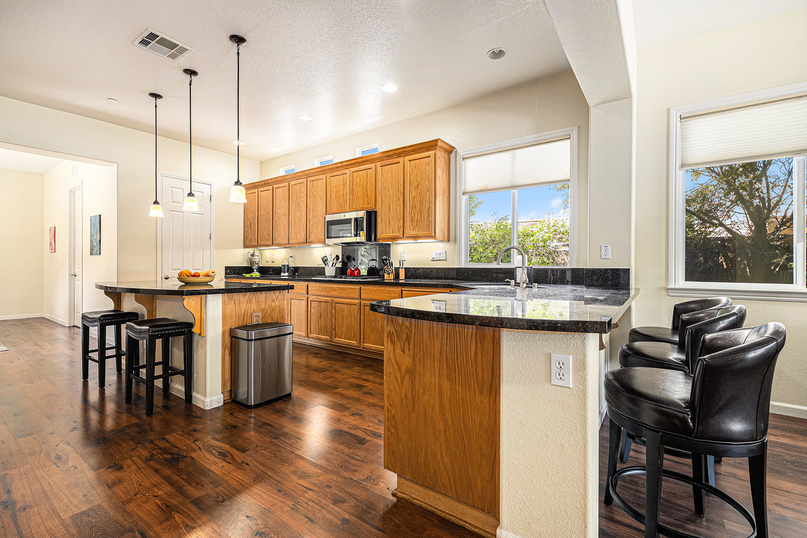 Step into this inviting open floor plan, featuring soaring high ceilings and stylish, low-maintenance laminate flooring throughout. The comfortable family room with plenty of natural light is anchored by a cozy gas fireplace—perfect for relaxing evenings or entertaining guests.