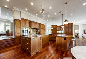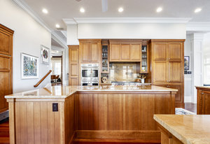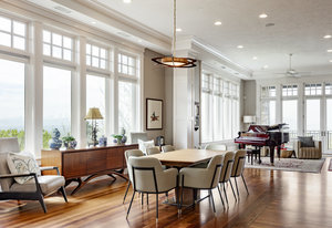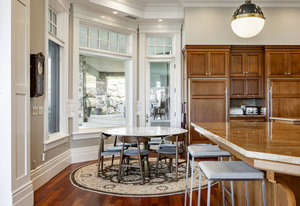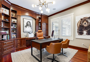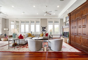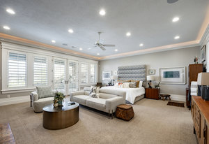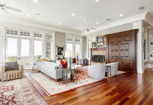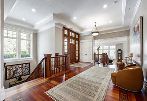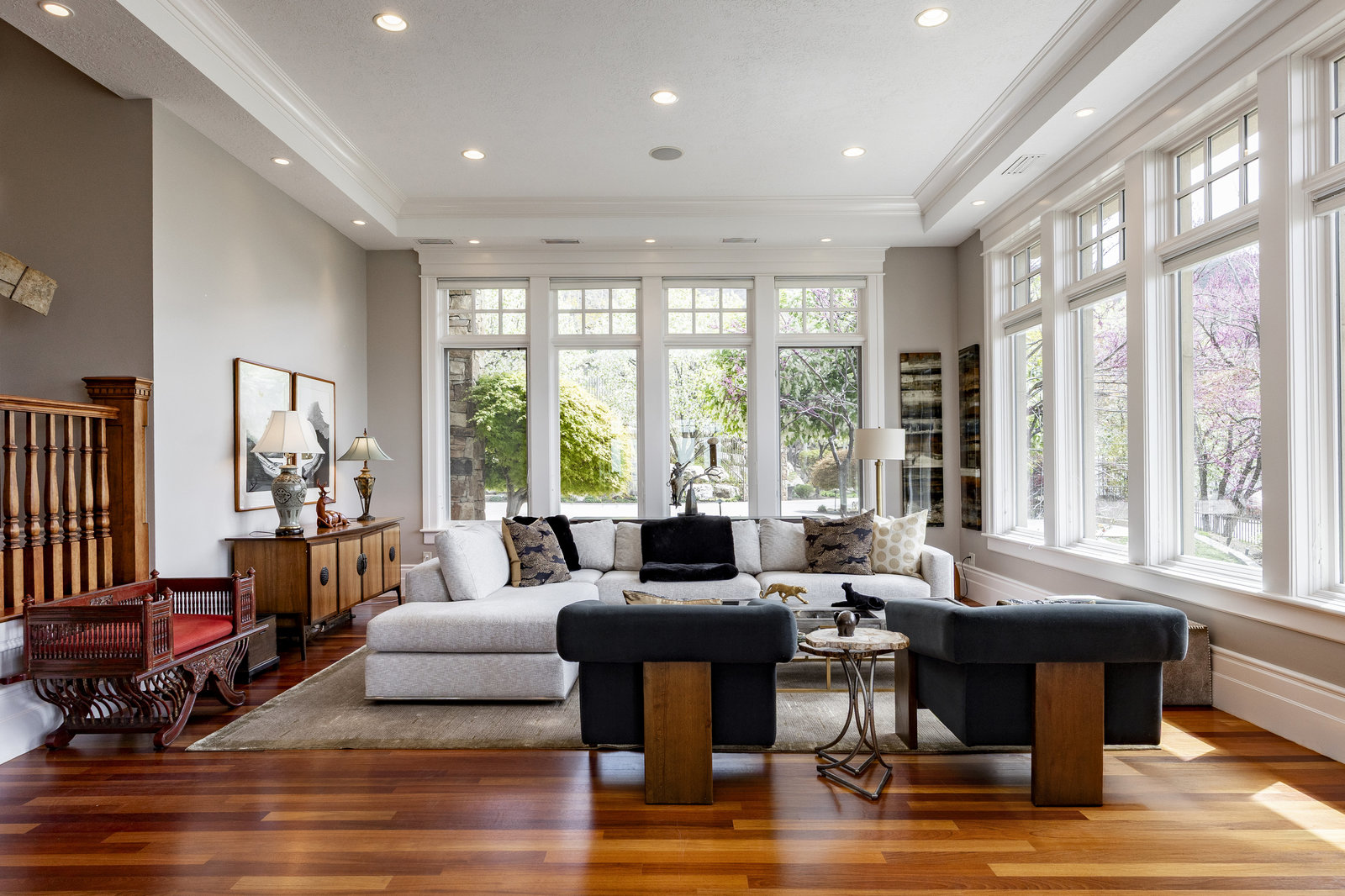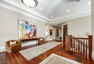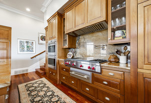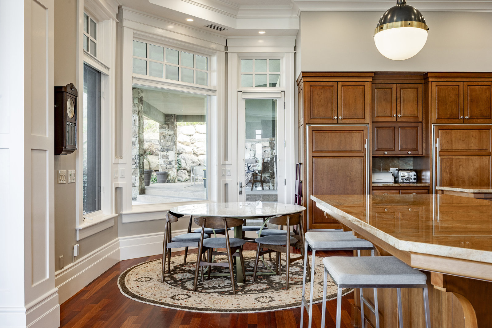 A gated, tree-lined drive leads to a residence defined by timeless craftsmanship—rich inlaid wood floors, soaring ceilings, refined moldings, and walls of windows that flood the home with natural light. Thoughtfully designed spaces invite both formal and casual gatherings, anchored by a spectacular double-island kitchen that serves as the heart of the home.
