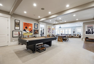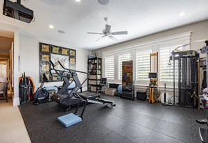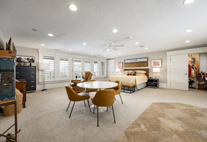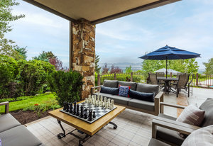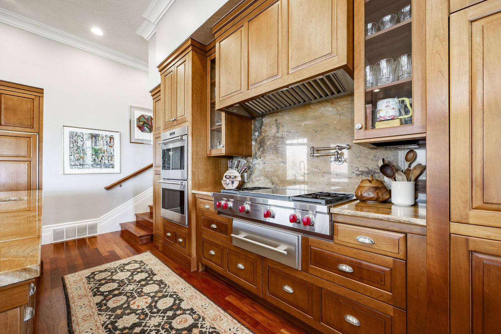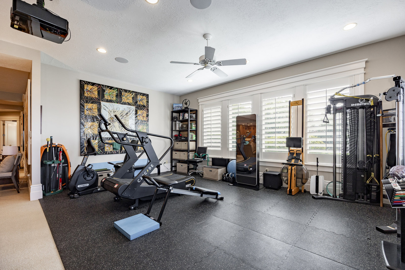 The lower level, a full walkout, offers expansive living and entertaining spaces: a theater, secondary kitchen, family and dining areas, a second laundry room, and abundant storage. The home features 6 ensuite bedrooms and 8 total baths, including a luxurious primary suite and a private upstairs guest quarters complete with full kitchen and a balcony facing Mt. Olympus.