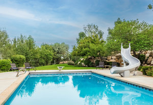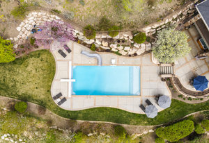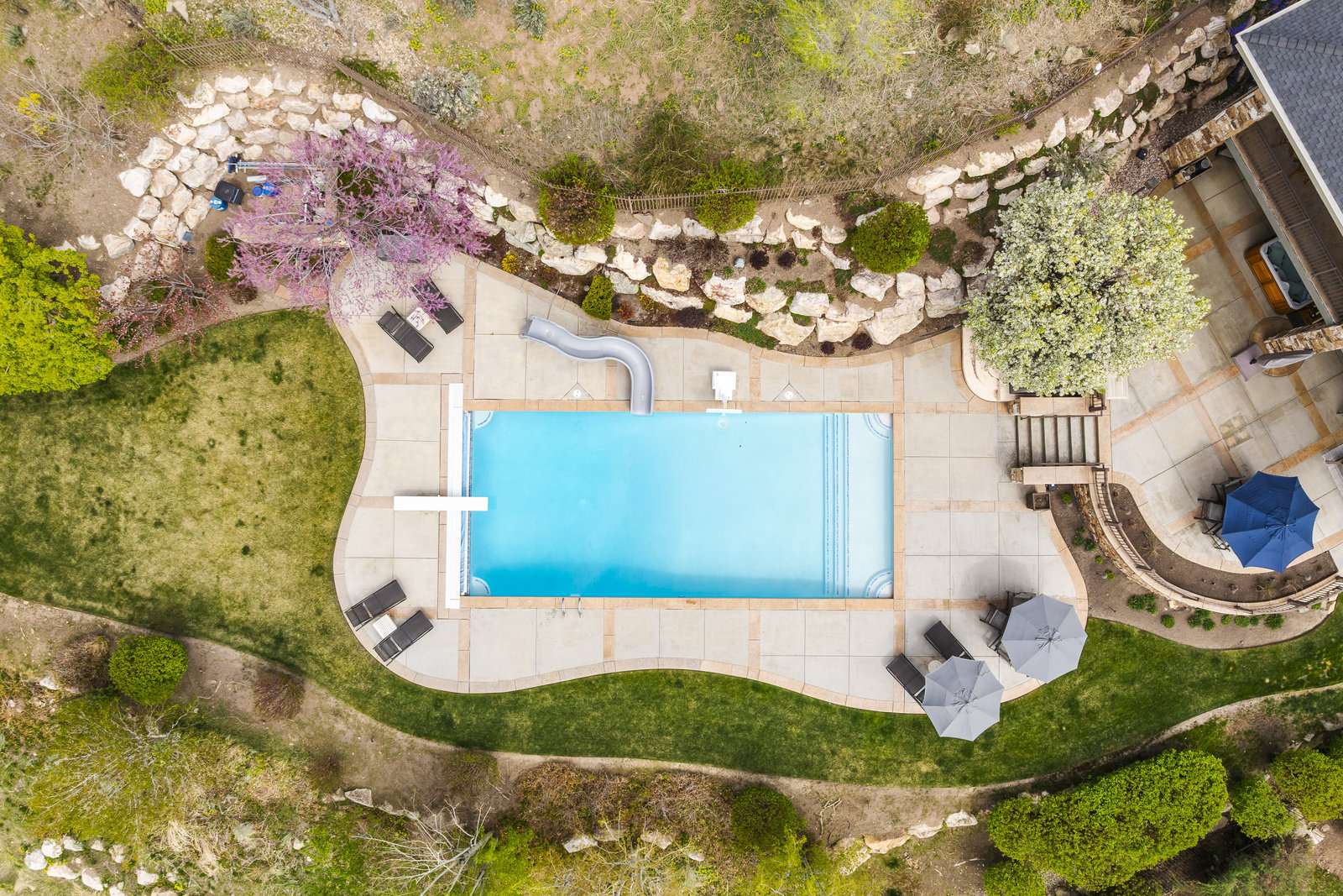 Wraparound covered decks on both levels frame mesmerizing sunsets, sparkling city lights, and panoramic views in every direction. The outdoor spaces include a resort-style pool, separate hot tub, and mature landscaping designed for year-round enjoyment.