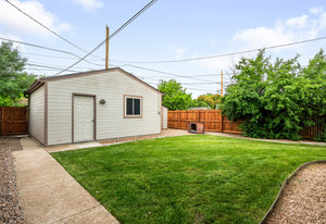 Just three blocks from Sloan’s Lake and minutes from the shops and restaurants of Highlands Square, this 3 bed / 2 bath corner-lot home offers the perfect blend of urban access and neighborhood charm. Set on an oversized lot, it features a spacious backyard and side patio—ideal for entertaining, relaxing, or letting pets play—plus a two-car detached garage and utility shed for extra storage. Inside, the sunlit living room welcomes you with a classic coved ceiling and leads gracefully through arched doorways into the dining area and open kitchen. The home’s smart layout offers two separate bedroom wings for privacy and flexibility. The primary suite is tucked away on the south side and includes a generous walk-in closet, en suite bath, and views of the backyard. Two additional bedrooms and a full bath occupy the opposite wing, with a centrally located laundry room for convenience. Additional highlights include central A/C, hardwood floors, and an unbeatable location in one of Denver’s most desirable neighborhoods.