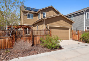 Move-in ready Bradburn home offering superb living in one of Westminster’s most walkable neighborhoods. Enjoy effortless access to local favorites including cafes, restaurants, shops, Whole Foods, and an extensive trail system. Designed for both comfort and style, the home features 8-foot doors and wood floors throughout. The open main floor plan includes a dedicated office, formal dining room, mud room, and living room with gas fireplace that flows seamlessly to a low-maintenance backyard with patio, garden, and a custom-built pergola. The spacious kitchen is equipped with stainless steel appliances, a gas range, granite countertops, wine cooler, walk-in pantry, island and tons of cabinets with pull-out shelving. Upstairs, the primary suite offers a five-piece en-suite bath and custom walk-in closet. Two additional bedrooms and a full bathroom complete the upper level. Additional highlights include an oversized 2-car attached garage, custom window shutters and blinds, laundry room with included washer/dryer, and an unfinished basement ready for your vision. Solar panels are owned and included, offering long-term savings. Bradburn is a quiet yet social community. Amenities are offered for those looking for access to the outdoor pool, clubhouse and tennis court for an additional fee (currently $500/year).