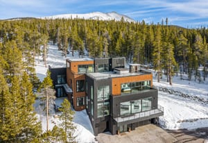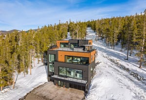 Bunker Hill Estate – Architecturally bold. Unmatched views. One of a kind. Perched atop Baldy Mountain in Breckenridge’s Woodmoor enclave, this modern showpiece delivers panoramic vistas stretching over 30 miles, encompassing Quandary, Pacific, the Ten Mile Range, and the entire Breckenridge ski area. No other private estate in Colorado offers this level of visual drama, an unbroken alpine skyline, complete privacy, and unforgettable sunrises and sunsets. Carved into the mountainside, Bunker Hill Estate features its own private ski runs with a dedicated rope-tow lift, giving you direct access to untouched powder right from the doorstep. Set on 5 wooded acres with private trails for hiking, biking, skiing, boarding, snowshoeing, and more, this 6-bedroom, 7-bath estate offers 7,383 square feet of living space, plus a private elevator serving all four levels. Designed for true four-season living, the home includes a 7-zone EAS Summit Oxygen Bed Head & Wearable system, with altitude-recovery technology roughed in across key rooms for oxygen-enhanced comfort. Built with Insulated Concrete Forms (ICF), the estate delivers exceptional structural strength, fire resistance, and soundproofing, supported by a Life Deck AMAC waterproofing system. Luxury finishes include imported Italian porcelain slabs, triple-pane windows and sliding glass doors, custom Italian lacquered-glass cabinetry and vanities, and Brazilian translucent stone countertops. The chef’s kitchen showcases Sub-Zero fridge and freezer towers, a Wolf tabletop range with wok, Wolf double ovens, a speed oven, a Miele coffee system, dual islands, a 45-inch sink, and a walk-in butler’s pantry. Outdoor living is equally impressive, with more than 2,000 square feet of terraces and rooftop spaces. The “Eagle’s Nest” rooftop deck features a TileTechPavers Hex snow-melting system and includes a 10-person hot tub and glass-front sauna overlooking the Breckenridge ski slopes. This is the only home in Summit County that combines ICF construction, 5 private acres, imported Italian finishes, a private ski run with rope-tow, and sweeping views of the entire Breckenridge ski range. Bunker Hill Estate – Bold. Private. Iconic.