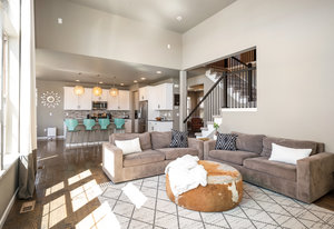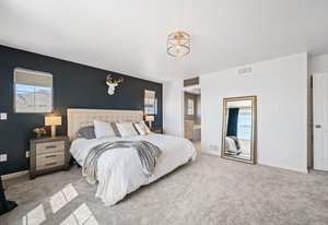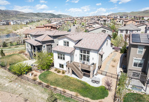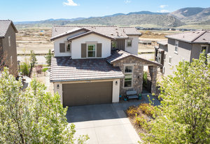 Upstairs, you’ll find brand new carpet throughout, three bedrooms, two full baths, and a convenient laundry room. The primary suite offers stunning mountain views and a 5-piece bath with quartz counters, dual sinks, a soaking tub, walk-in shower, and spacious closet. The two secondary bedrooms share a Jack-and-Jill bath with double sinks and quartz finishes.