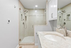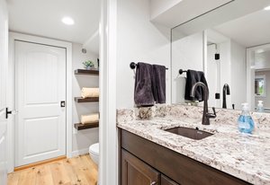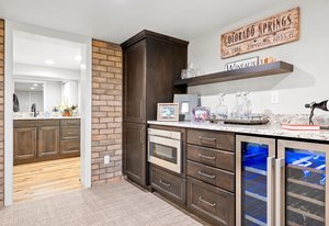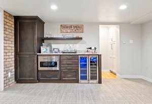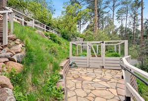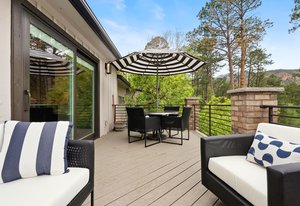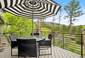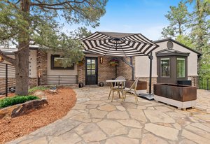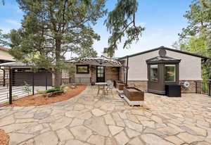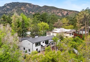 Forever has arrived. A modern sanctuary between The Broadmoor Hotel and Starsmore Discovery Center, with a lot that stretches all the way down the hill to Pine Grove Terrace, this home was taken to the studs in 2018 to create a timeless masterpiece of simplicity and beauty. The kitchen is perfection, with real marble counters, a Wolf range and hood, Wolf oven and microwave in a genius butler/laundry pantry, Miele dishwasher, a Subzero refrigerator and exceptional cabinetry. The primary suite has multiple walls of built-ins and custom closet organization with a private garden and mountain view bay window. Toto commodes, heated floors and towel racks in bath, gorgeous tile work and a spacious two-person shower make for a 5-star spa bathroom. The dining has a signature bubble pendant LED light fixture with picture windows ornamenting the generous living room with hearth and fireplace. Downstairs is a premium wet bar with microwave and brand new beverage fridge, complete with leathered counter and composite undermount sink. A cozy family room has walkout views of the flagstone garden and a proper media set up. Two more bedrooms enjoy the views of the garden and ornamental rockscape. A full bath with lovely tile services the basement. Outdoors, the lifestyle takes shape with an overbuilt synthetic deck complete with built in waterproof TV and metal railings. Exceptional stonework cascades down the property with nighttime lighting and custom metalwork railings guiding the pathways. A raised garden bed offers your own summertime bounty. Major improvements like oversized gutters with cleanouts and leaf covering, a sun-filled front flagstone patio, privacy wall at front, standing seam metal roof, architectural carport, premium windows and doors, and commercial quality mechanical system with water furnace and indirect-fired water heater. Like nothing else in town, this is a 7 min walk to Broadmoor West, and 10 minutes to Cheyenne Cañon trailheads. Less but better has a home.