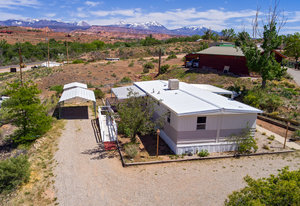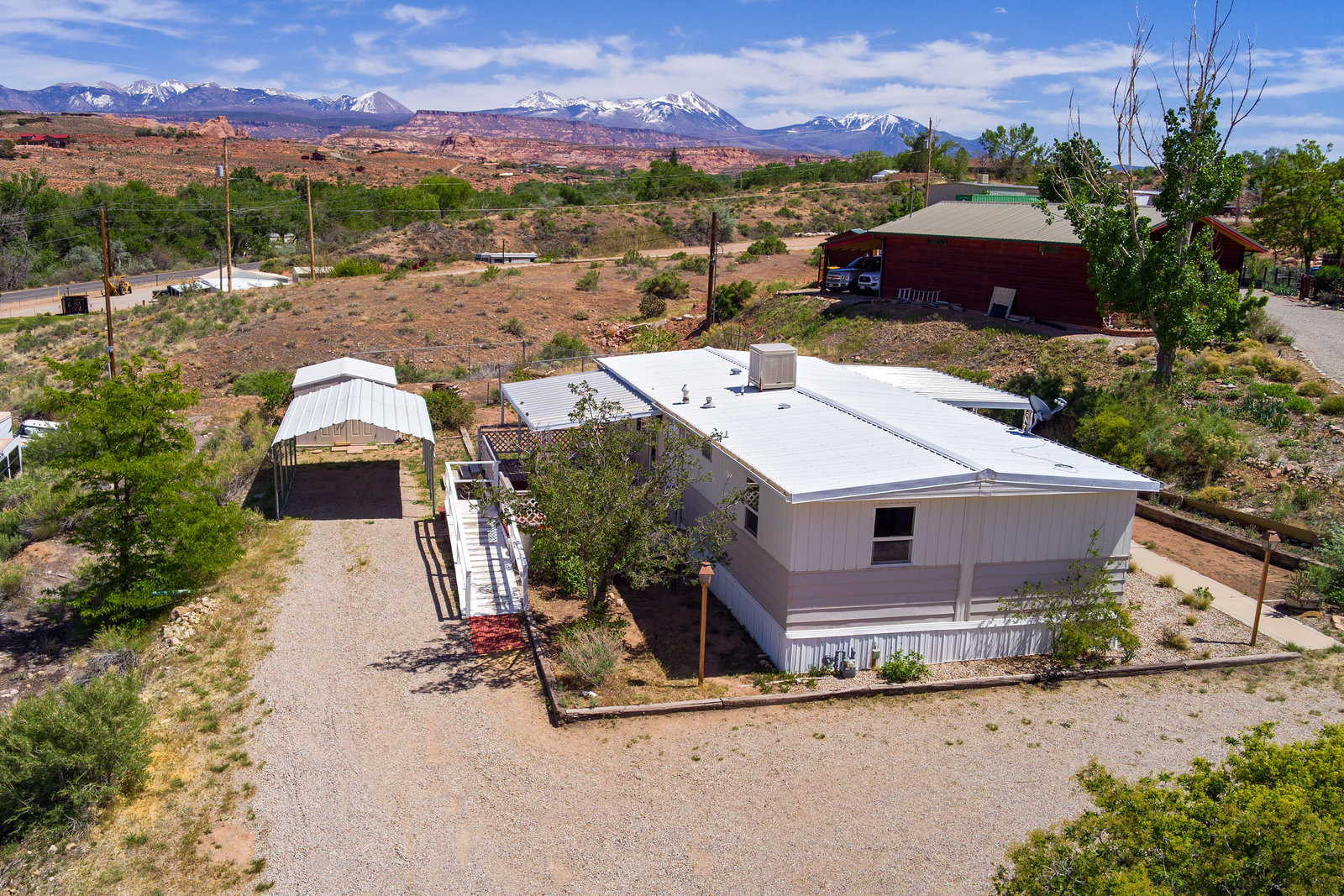 Welcome to your affordable retreat! The property will qualify for a conventional loan. Please contact listing agents for lender information. This cozy 2-bedroom, 1-bath home sits on a generous .53-acre lot, offering breathtaking views of the majestic La Sal Mountains. Perfectly positioned above the valley floor, this property provides a serene escape with two covered decks where you can relax and soak in the picturesque surroundings. Step inside to discover a welcoming atmosphere featuring a nice kitchen equipped with ample cupboard space and a gas range. This home is also set up for a pellet stove, ensuring warmth and comfort during the colder months. A sturdy shed provides space for your tools ...