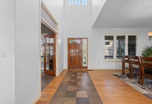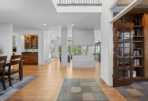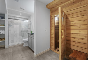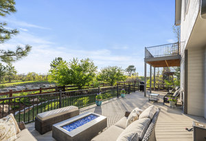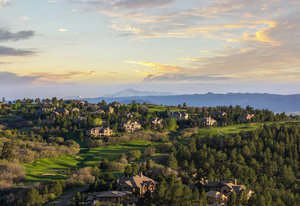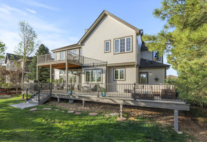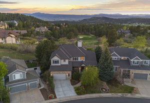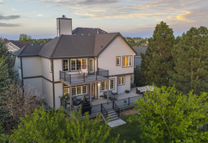 Mountain Views & Modern Luxury in Castle Pines! Perched just off Hole #12 of The Ridge at Castle Pines Golf Course, this stunning home offers unobstructed views from Devils Head to Mt. Evans. A brand-new expansive back deck and private upper deck off the Primary Suite provide the perfect vantage point, complete with a gas line-fed blue glass fire pit for year-round enjoyment. Inside, you'll find newly refinished oak floors and a striking Da Vinci four-sided glass fireplace with color-changing glass stones. The kitchen boasts updated appliances, including a newer dishwasher, refrigerator, and cooktop. The Primary Suite received a full refresh in 2024, including new flooring, custom cabinetry, quartz counters, updated lighting and fixtures, and a luxurious new shower. The finished basement includes a guest room, full bath, TV room, sports bar, and sauna—ideal for entertaining or hosting guests. A full HVAC system—furnace, A/C, humidifier, and hot water heater—was installed in 2021 for comfort and peace of mind. Additional updates include new exterior paint and lighting, and stylish ceiling fans in the main living area and Primary Suite. This home seamlessly blends elevated style with modern function—all in a prime Castle Pines location with breathtaking mountain and golf course views!