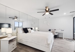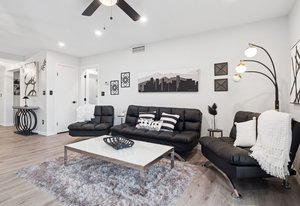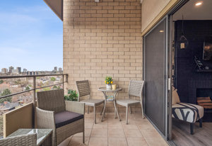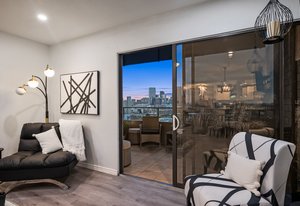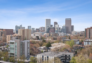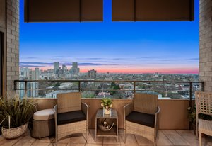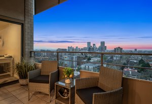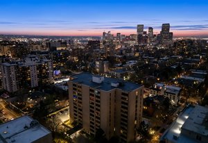 Million-dollar views - breathtaking, unobstructed views of the Denver skyline & Front Range mountains from this fully remodeled top-floor condominium. Enjoy mesmerizing sights of the iconic Wells Fargo building along with the ever-changing cityscape illuminated by alpine glow, sunsets, twilight, and moonlight from the north-facing balcony. This condo has been thoughtfully updated to suit modern living, featuring a reimagined floor plan with every detail meticulously designed. The spacious bedroom features a walk-in closet and direct access to the balcony. Wide-plank luxury vinyl flooring, captivating wood-burning fireplace & a beautifully opened kitchen with grand counter space, Frigidaire stainless-steel appliances add warmth & character to the home. The bathroom is sleek and efficient space. The overhead lighting and a premium position within the building makes this condo perfect for today's urban lifestyle. Parking is a breeze with an included garage space, plus ample outdoor parking for a second vehicle & guests—an invaluable asset in this sought-after neighborhood. The secure, amenity-rich Governor’s Place building includes a community great room, card room, billiard room, indoor pool, jacuzzi, gym, sauna, steam room, indoor racquetball court, outdoor tennis court & shaded lawn space. With updated common areas, three elevators, and a solid HOA, Governor’s Place provides both comfort & convenience. This location has easy access to downtown Denver, Cherry Creek and 6th Ave to the mountains and close proximity to Trader Joe’s, King Soopers, Whole Foods, Safeway, restaurants, coffee shops and many other services. Let's talk laundry - less than 50 units use the immaculate laundry room because the rest of the units in the building have in-unit laundry. So, throw all 3 or 4 loads in at once in the laundry room & be done in an hour, instead of over 4 hours in your condo. Please note that this pet-free building allows emotional support and service animals only.
