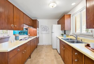 Step inside to a light-filled living room with hardwood floors, a cozy wood-burning fireplace, and fresh interior and exterior paint. The spacious dining room opens to a mid-century kitchen that retains its original charm and functionality. A full basement provides versatile living space with a non-conforming 4th bedroom, a bonus room, and laundry—perfect for guests, work, or hobbies.