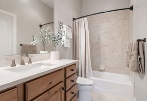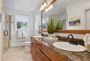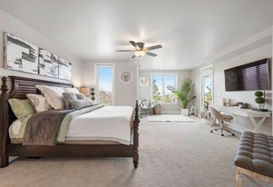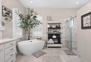 The newly renovated gourmet kitchen is a chef’s dream with high-end stainless appliances, quartzite countertops, a wine steward, custom cabinetry, and an open flow perfect for entertaining. The primary suite features a luxurious en-suite bath with a curbless walk-in shower, freestanding soaking tub, and elegant finishes.