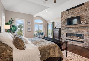The finished walk-out basement expands your living space with a spacious rec room, gas fireplace, full wet bar, game room with beverage fridge, and direct access to a covered patio, fire pit, and private pool—an entertainer’s paradise.
