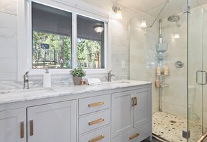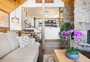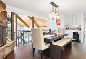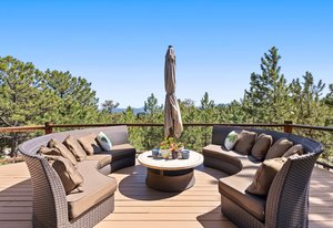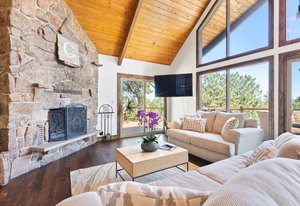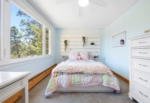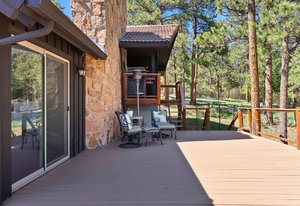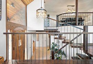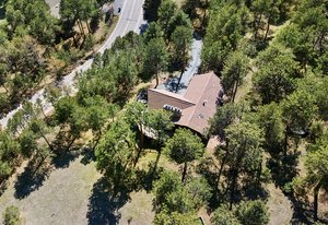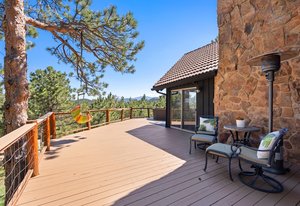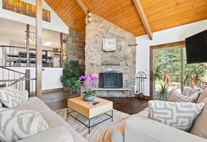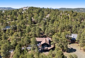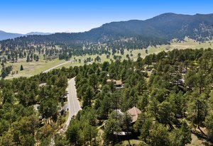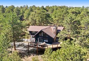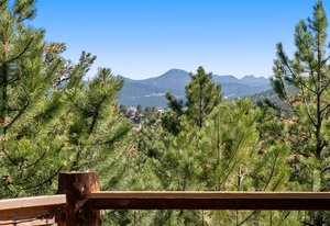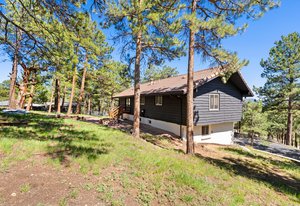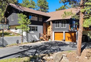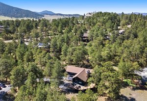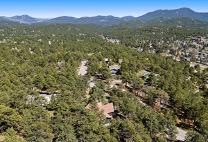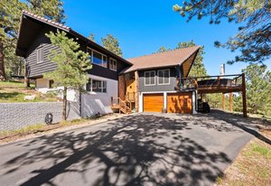 A charming Hiwan house with great history! This classic residence, one of the original Hiwan Country Club homes, was built just two years after the establishment of Hiwan Golf Club & blends historic charm with modern updates. Mountain peak views create a stunning backdrop. The home’s distinctive features include a gracefully curving walnut spiral staircase with handcrafted stair rails & balusters & original mountain moss rock fireplaces complemented by a unique planter with integrated water feature. These historical elements are beautifully juxtaposed against modern updates, ensuring comfort without sacrificing character. The heart of this home, a newly remodeled kitchen designed by local artisans Blackbird Kitchen & Design, showcases custom Greenfield cabinets, a majestic 48-inch gas range, quartz countertops, appliance garage, SS appliances, open shelving, all set against a backdrop of new walnut hardwood floors. The kitchen’s sleek design is matched by recently updated bathrooms that radiate contemporary elegance and functionality. New expansive windows cast gentle natural light across the refined interior, highlighting the freshly painted walls & new carpeting throughout the lower level enhancing the home's warm and inviting atmosphere. The upper bedrooms and living areas boast refinished walnut flooring. Recent comprehensive upgrades include a new asphalt driveway, complete gas and sewer line replacements extending to city connections, energy-efficient insulated garage doors, exterior repainting (2022), and an architecturally redesigned entrance with new stairs and decking. Situated moments from Hiwan Golf Club and the beloved Elk Meadow Open Space, the location offers both tranquility and accessibility, perfect for nature enthusiasts and club athletes alike. This home is a part of Evergreen's rich history, waiting to be cherished by its new owners.