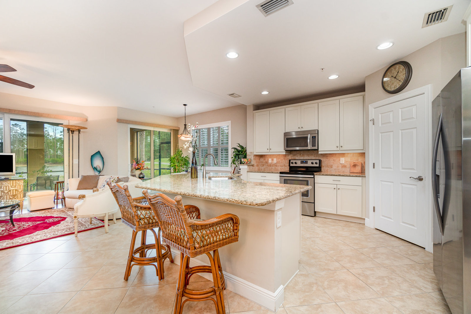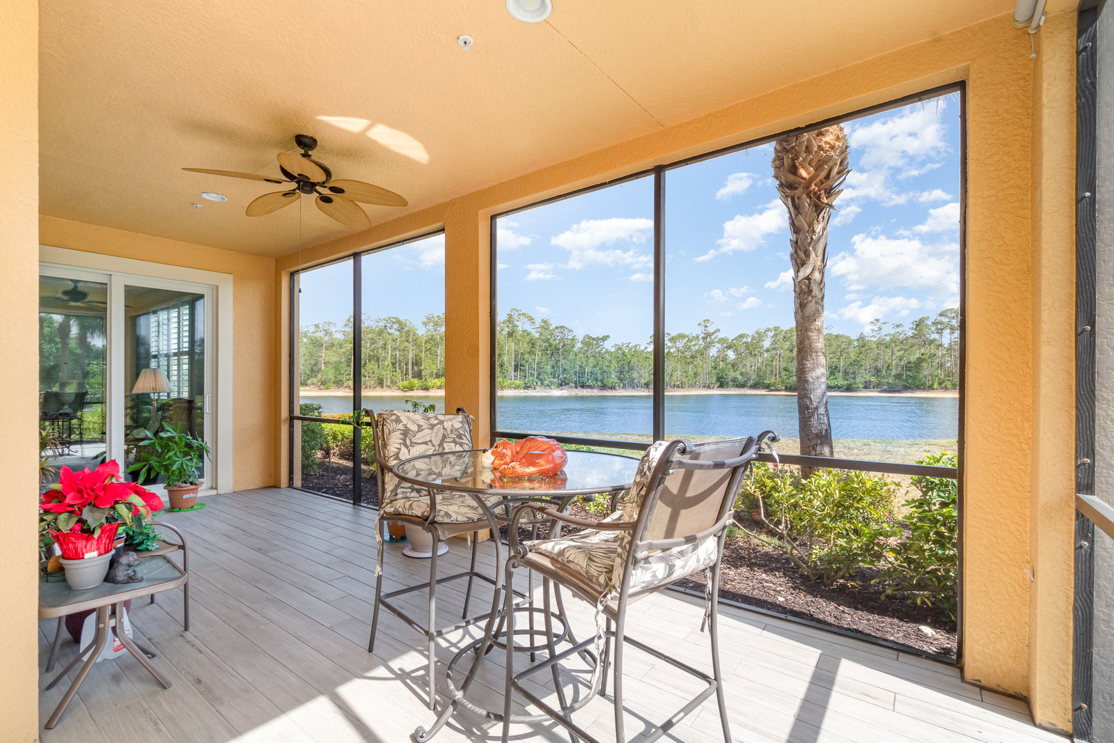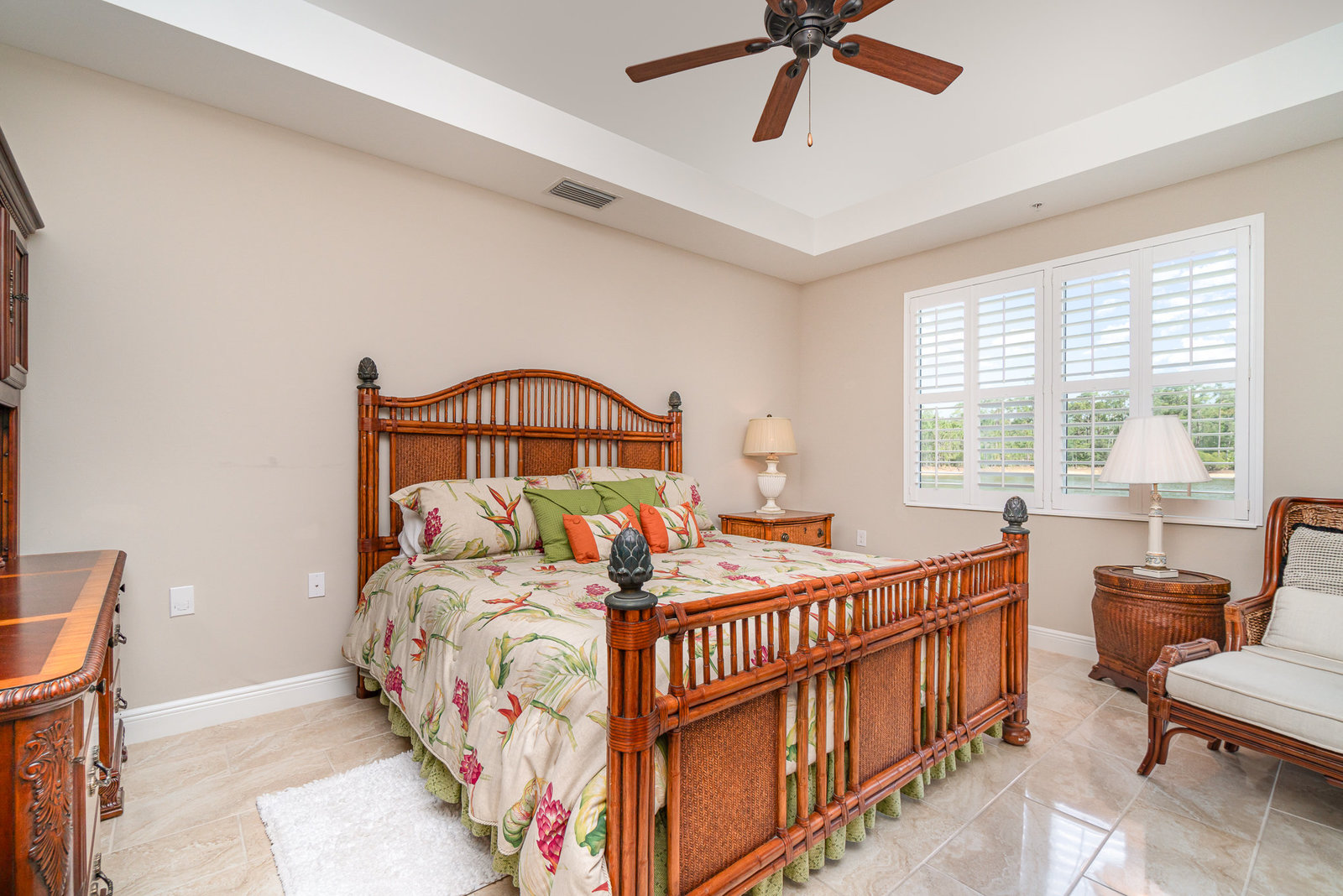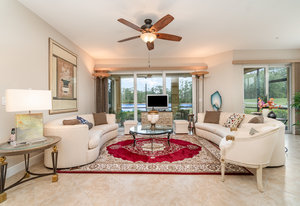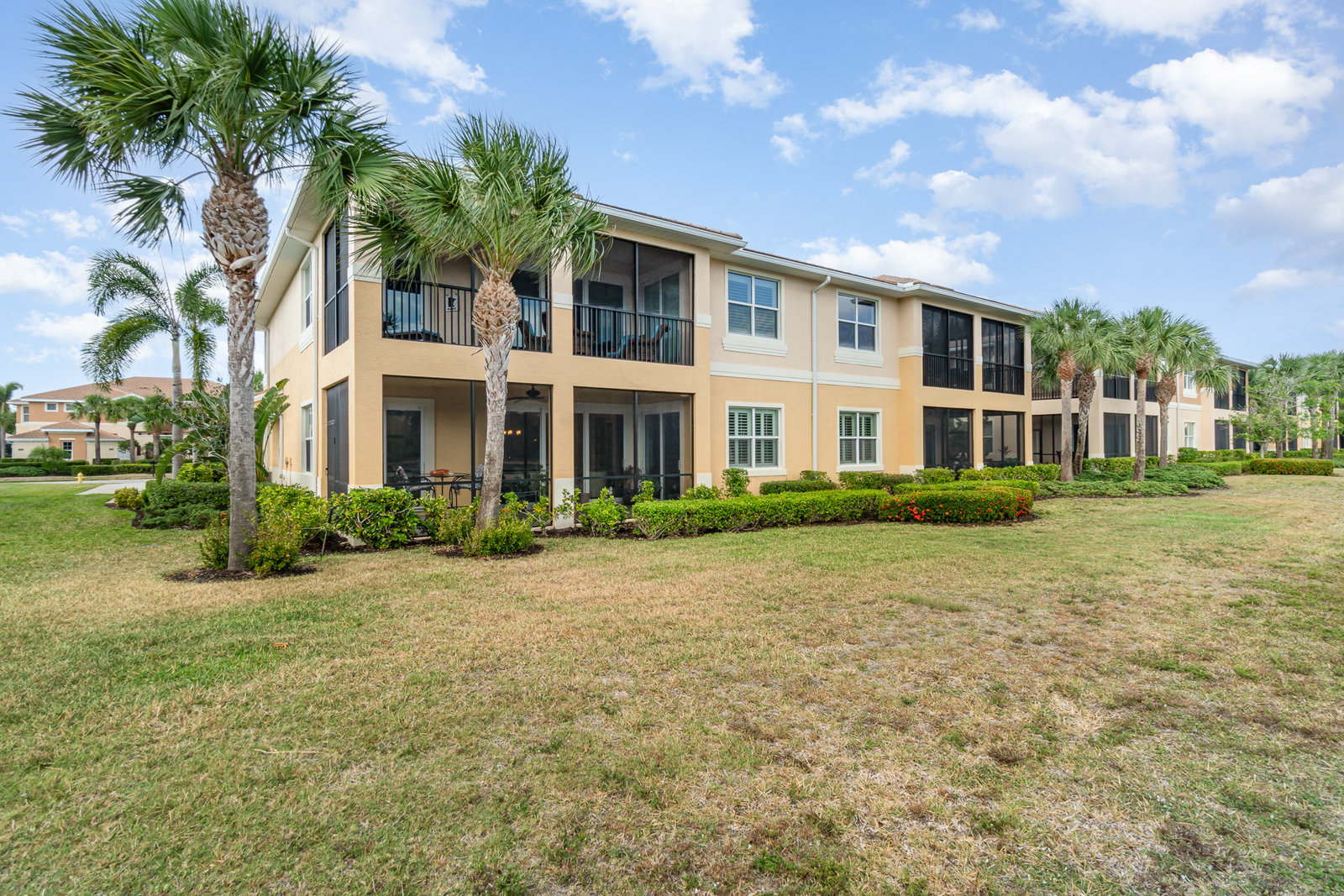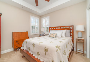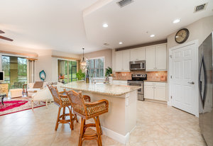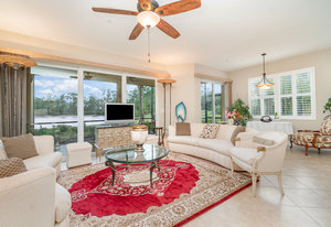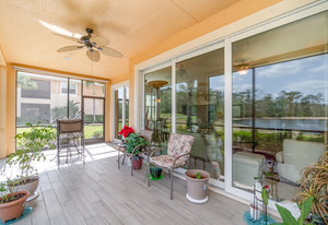 This first-floor carriage home offers 3 bedrooms, 2 bathrooms, a 2-car garage, and a ton of extras. You’ll love the tile floors (yep, even on the lanai!), plantation shutters, custom window treatments, and impact windows and doors — ready for whatever storm season brings.
