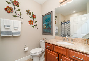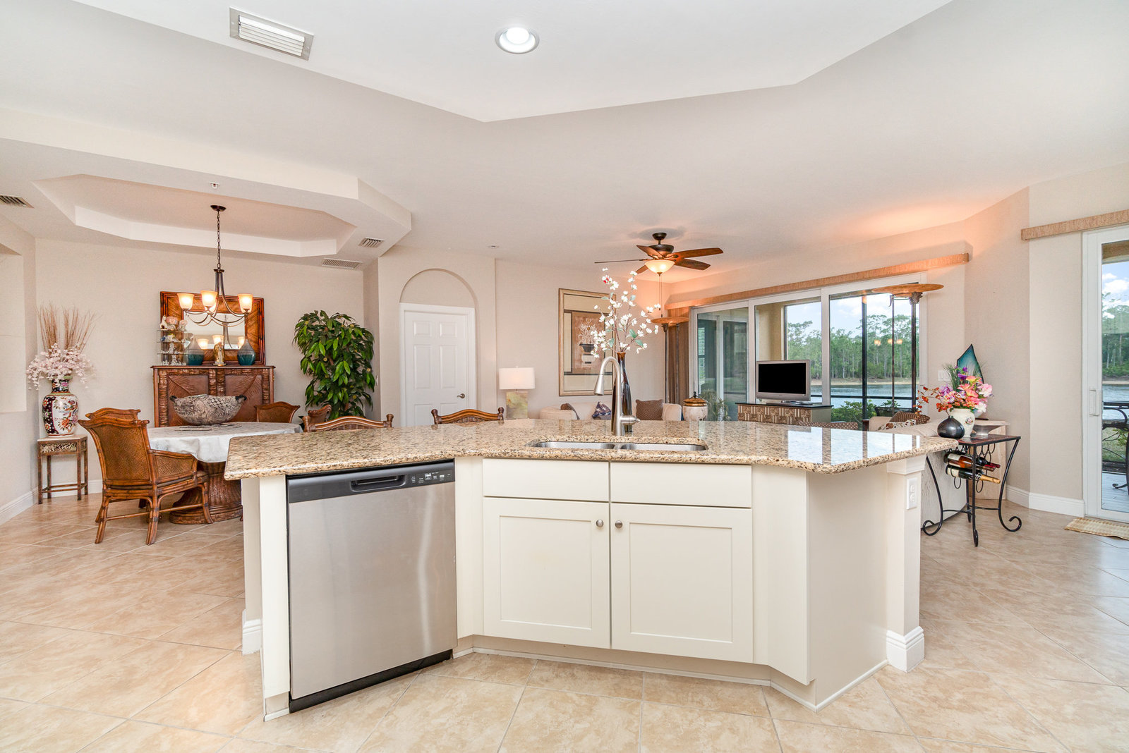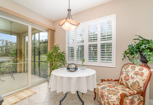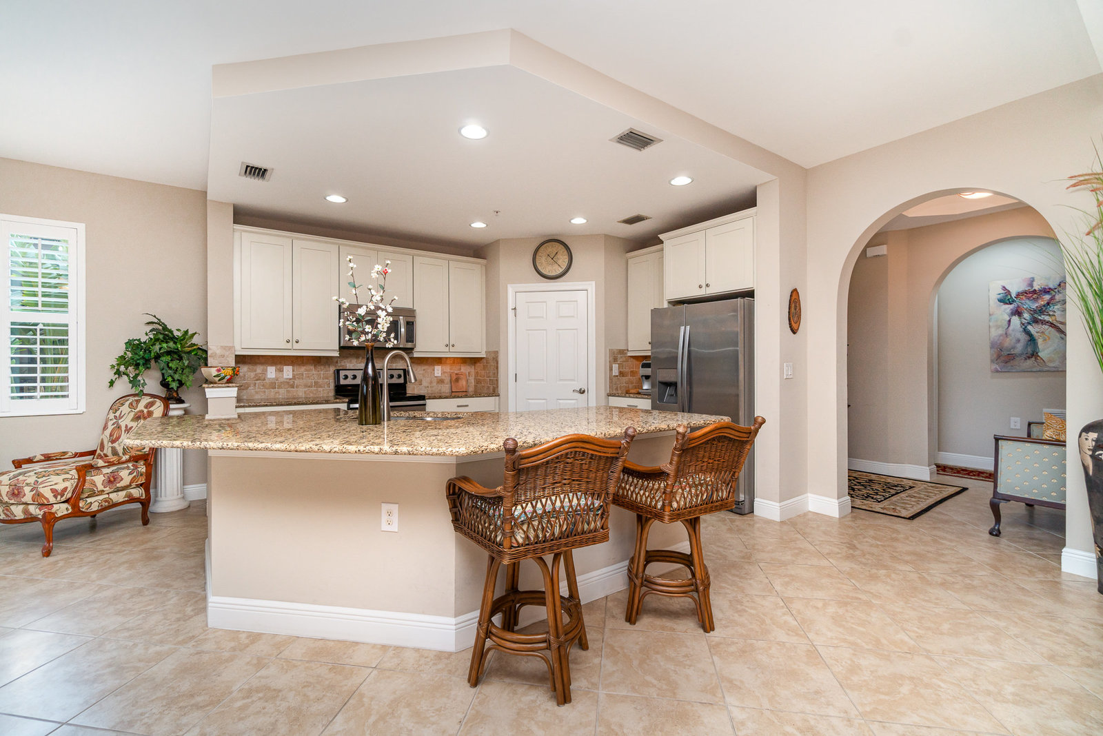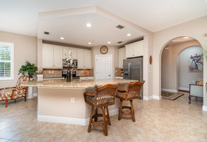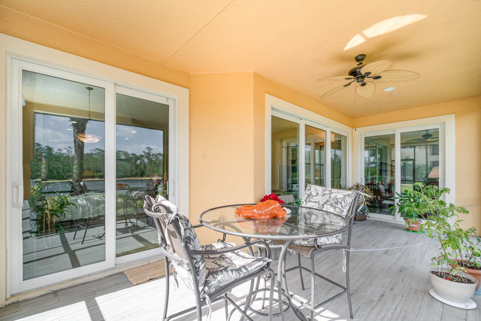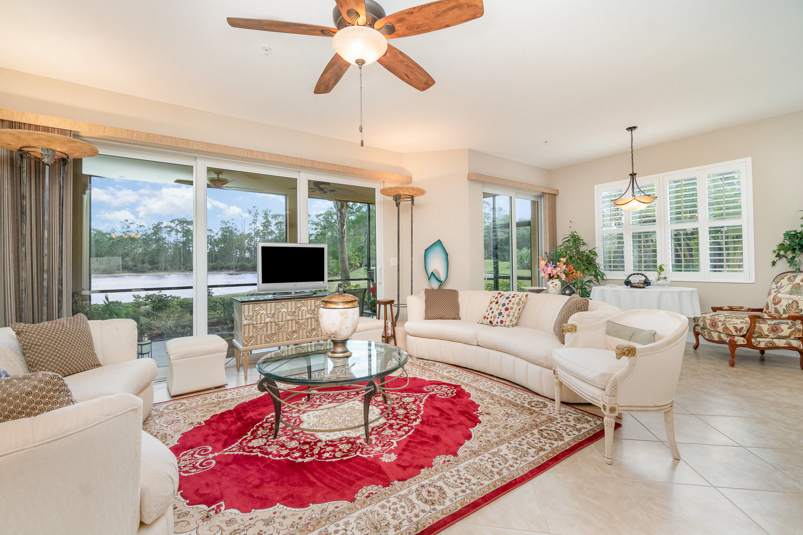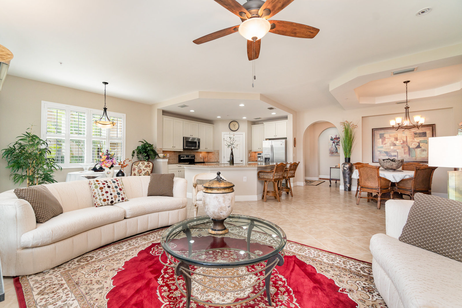 This first-floor carriage home offers 3 bedrooms, 2 bathrooms, a 2-car garage, and a ton of extras. You’ll love the tile floors (yep, even on the lanai!), plantation shutters, custom window treatments, and impact windows and doors — ready for whatever storm season brings.