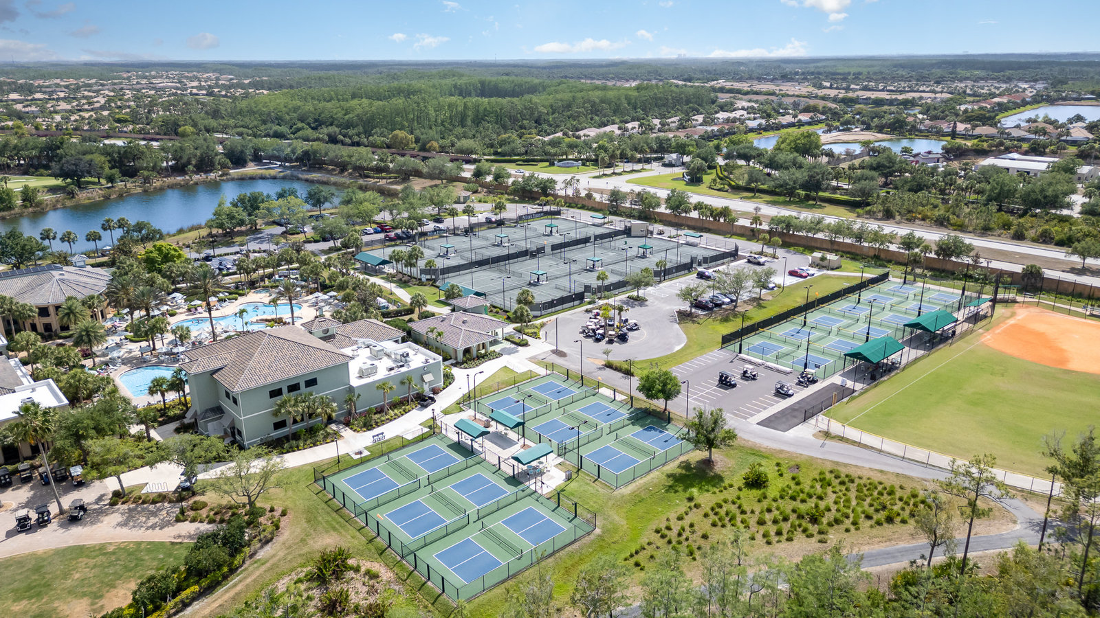 Pelican Preserve is one of the top 55+ communities in the country, and it’s packed with amenities. All this included….. non-equity golf, indoor and outdoor pools, an amazing gym, a lakefront beach, tennis, pickleball, a dog park, and more. There’s even a full-service spa, on-site restaurants, and a community storage area for your boat or RV!