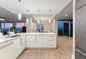 ALFRESCO LIVING on THREE terraces. 1,100 SF TERRACE, a PRIVATE terrace off primary and 3rd terrace off dining. This designer sanctuary offers unparalleled views, blending the vibrant cityscapes with the serene peaks of the Rocky Mountains. The open design concept ensures a seamless flow of space and light, enhanced by lofty ceilings and expansive windows that frame the captivating views. The reimagined Kitchen design sets the stage for culinary excellence with Professional Wolf and Sub-Zero appliances, custom cabinetry, and temperature-controlled wine storage. All encased in the oversized corner island anchoring the kitchen. The jewel box living room is framed on one end by a fireplace and media zone. Inversely, a formal cocktail lounge, occupies the other side. It has the size to cultivate any dream design while thoughtfully curated to provide an ambiance of sophisticated urban living. The residence wing is conveniently enclosed behind double doors. Perfect for a professional host, ensuring guests can roam freely while keeping personal space private. The Primary Suite, offering breathtaking city views from a private patio, a lavish five-piece bathroom adorned w/ herringbone Calcutta tile, Display wall and walk-in closet room. Also behind the double doors is a Guest Suite promising equally stunning views, a lavish guest bathroom with/ dual sinks, a soaker tub, and a walk-in shower adorned with artisan tile work. The STUDIO 3rd bedroom has an en-suite bath, walk-in closet, a wall of windows framing the private terrace. The BUILT-IN THEATRE can also be a 4th NC GUEST SUITE/OFFICE/GYM. One Lincoln Park resort lifestyle includes a private penthouse-level elevator, 24/7 concierge, Owner’s Club, Infinity Pool & Spa, and Fitness Center w/ Private Studios. All situated in the heart of Denver. This residence promises a lifestyle of unparalleled convenience & luxury. Walkable to Michelin Rated Restaurants, Coors Field, The Vibrant RINO, Union Station and MORE!