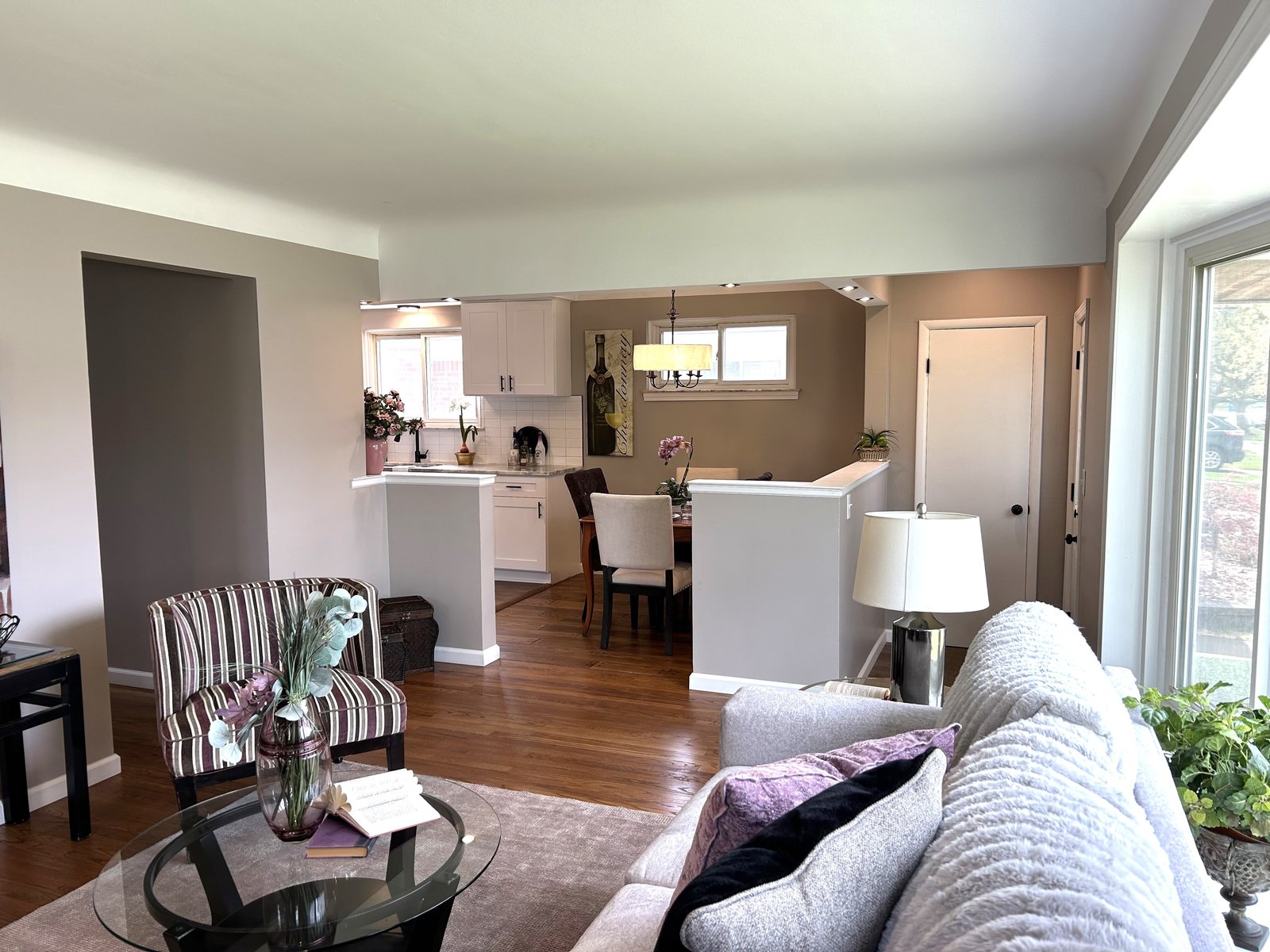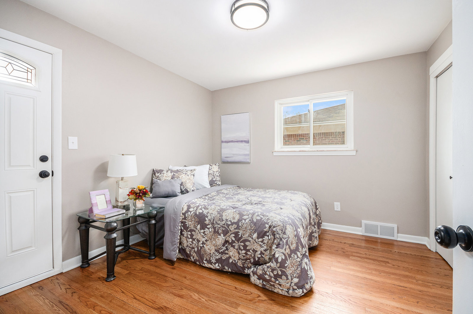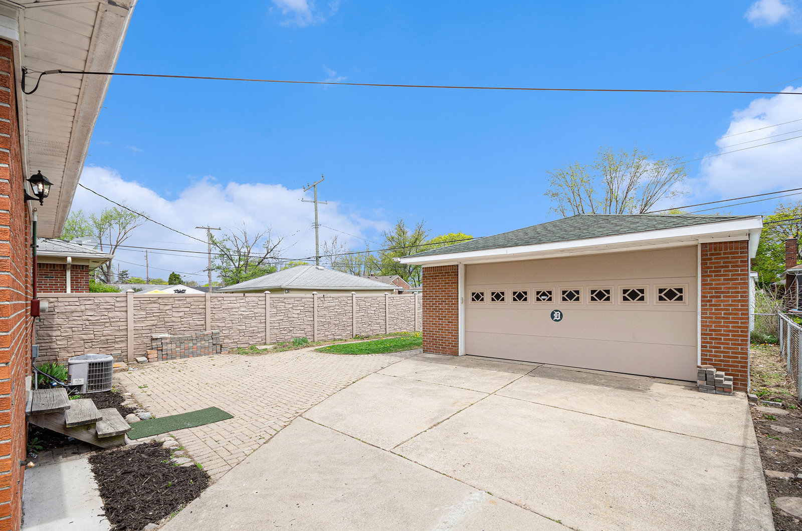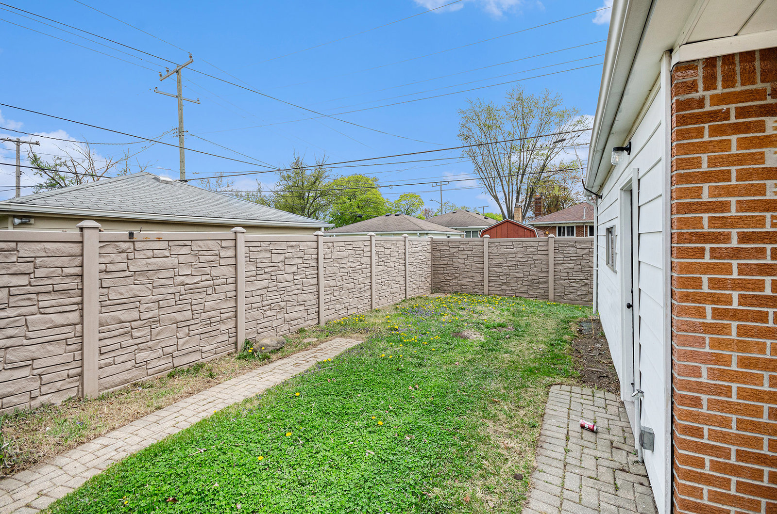 Beautifully remodeled 2025 brick ranch with a flowing floor plan and stylish updates throughout! The spacious living room is filled with natural light from the large bay window and features a cozy fieldstone fireplace, recessed lighting, and classic cove ceilings. The impressive kitchen offers granite countertops, white soft-close cabinets, white ceramic backsplash, brand-new stainless steel appliances, and a generous breakfast nook. Hardwood flooring extends through most of the main level. The primary bedroom includes two closets and a door leading to the backyard. Both full bathrooms—one on the main floor and one in the finished basement—are deluxe and updated. The finished basement includes luxury vinyl plank flooring, recessed lighting, glass block windows, and a large laundry room. Enjoy the outdoors in the nicely sized fenced backyard with a brick paver patio and a 2-car garage. A fantastic move-in-ready home with quality finishes!